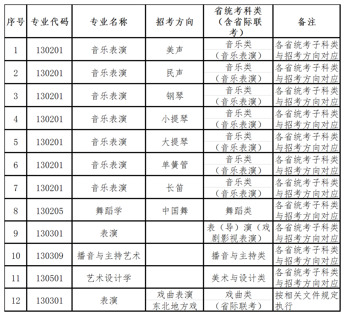 *注:表演(戏曲表演)(东北地方戏)招生按照省际联考相关文件执行。