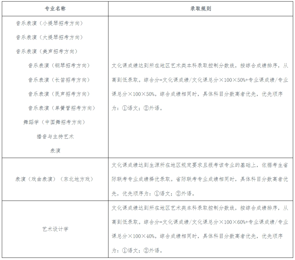 ①平行志愿投档批次,对符合招生所在地区投档条件,且符合我校录取规则中文化课成绩要求(详见下表中“录取规则”)的考生,按招生所在地政策录取。