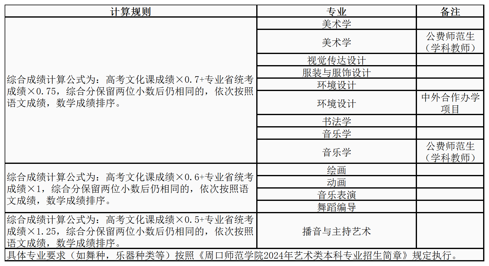 我校本科艺术类专业投档综合成绩计算规则