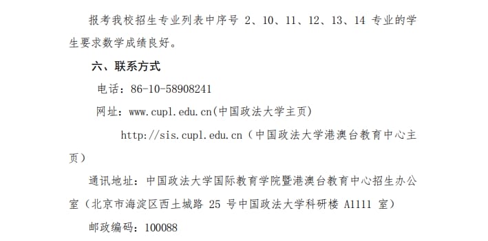 中国政法大学2025年中国普通高等学校联合招收澳门保送生简章