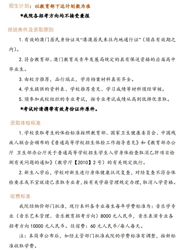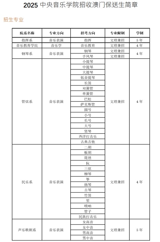 2025年中央音乐学院招收澳门保送生简章