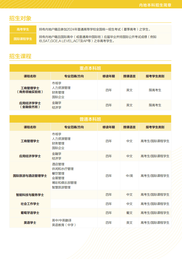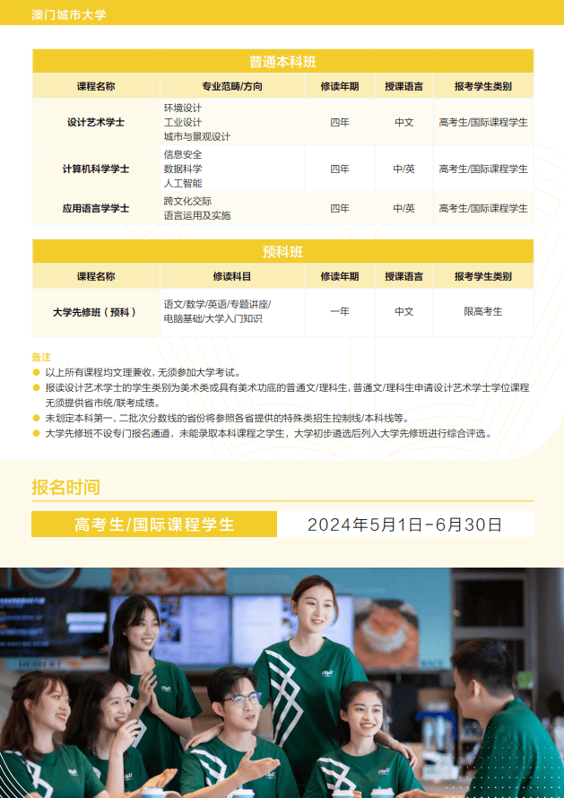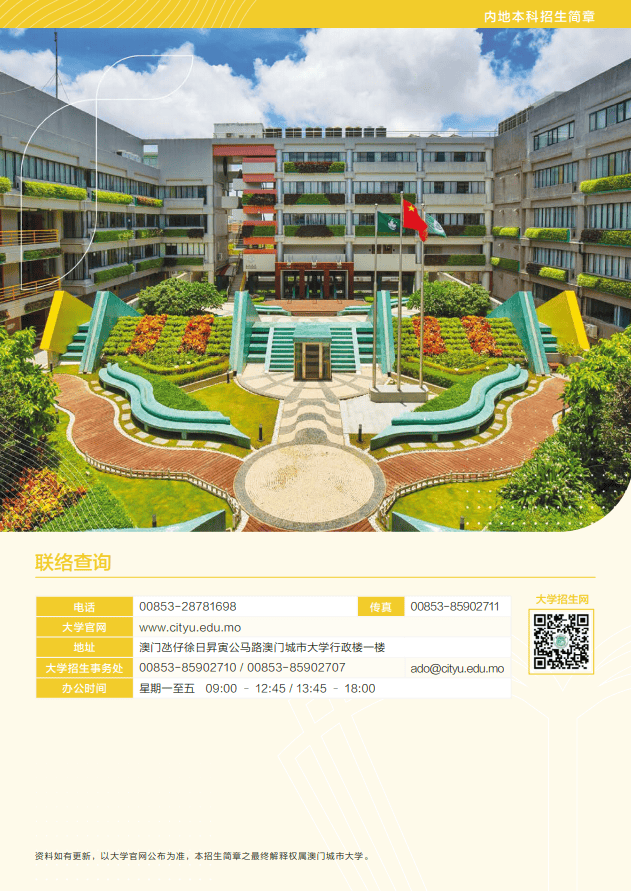 澳门城市大学2024/2025學年學士學位(本科)課程招生簡章