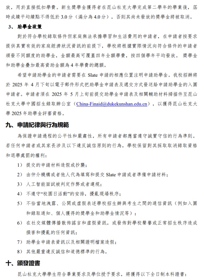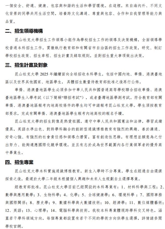 昆山杜克大学2025年本科招生简章 (华侨、港澳台地区学生)