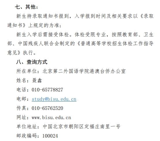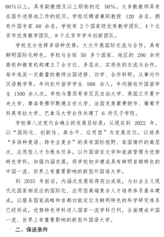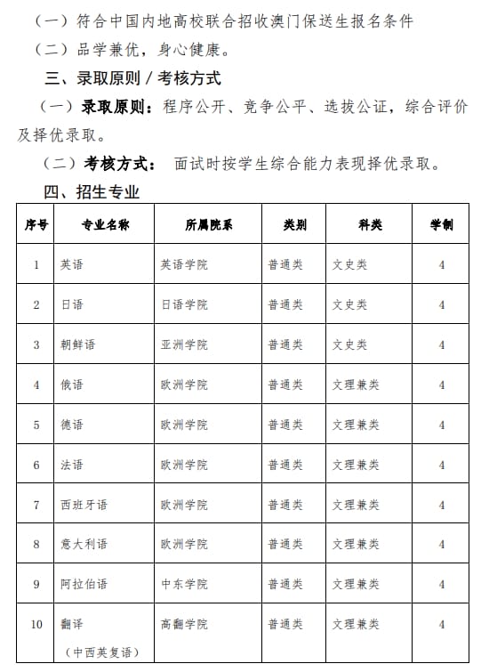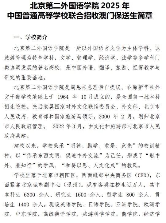 北京第二外国语学院2025年招收澳门地区保送生简章