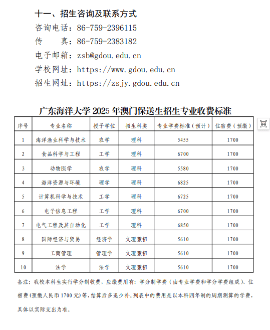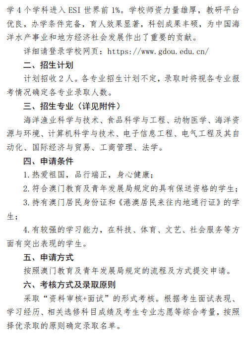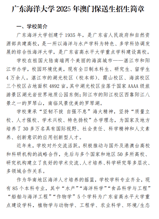广东海洋大学2025年招收澳门地区保送生简章