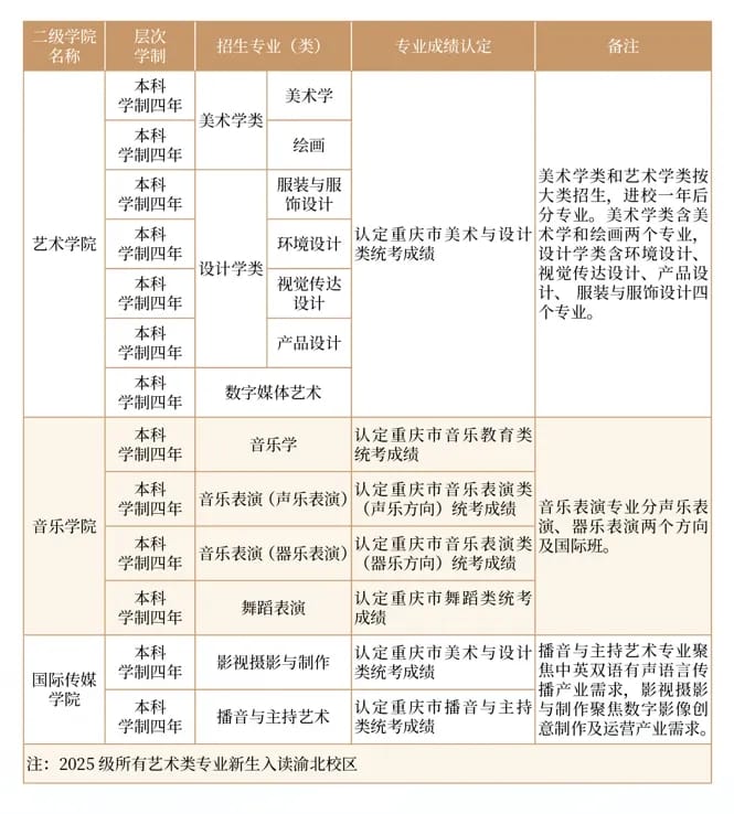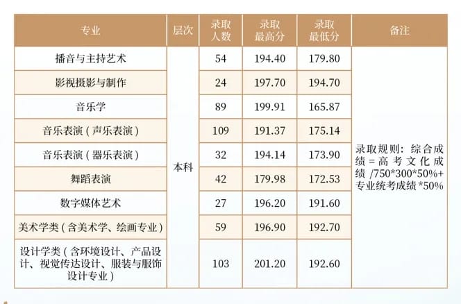 2024年学校艺术类专业在渝录取情况: