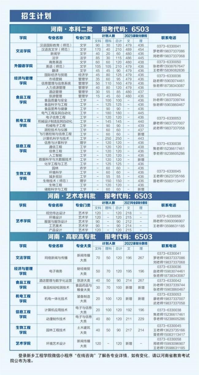 新乡工程学院2024年招生计划