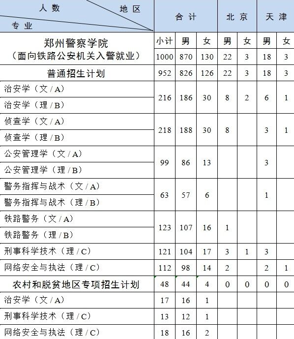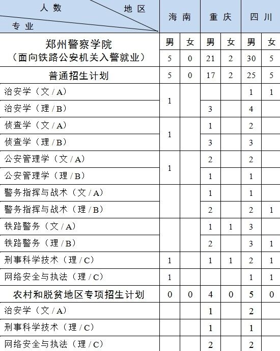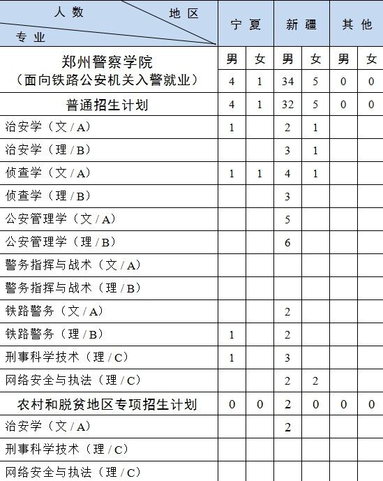 2.新疆计划中含南疆单列计划 1人,具体为铁路警务(理)男生1人。