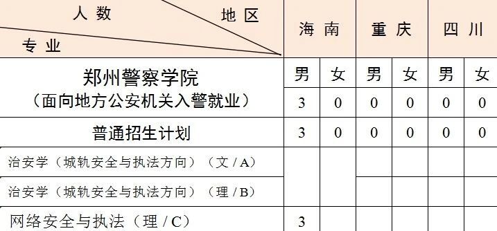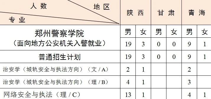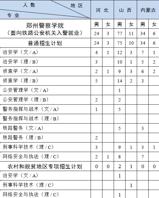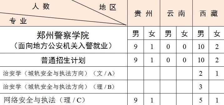 3.西藏计划中含西藏高中班计划 3人,均为男生,具体为治安学(城轨安全与执法方向)(理)3人。