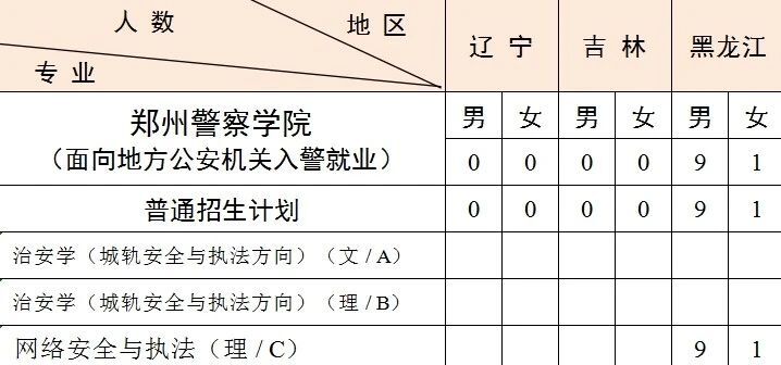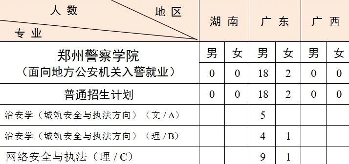 1.新疆计划中含新疆协作计划转入 6人,均为男生 ,具体为治安学(文)2人、侦查学(理)2人、公安管理学(理)2人。