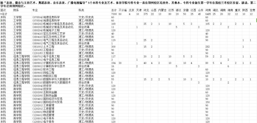 2024年郑州工商学院招生计划大表