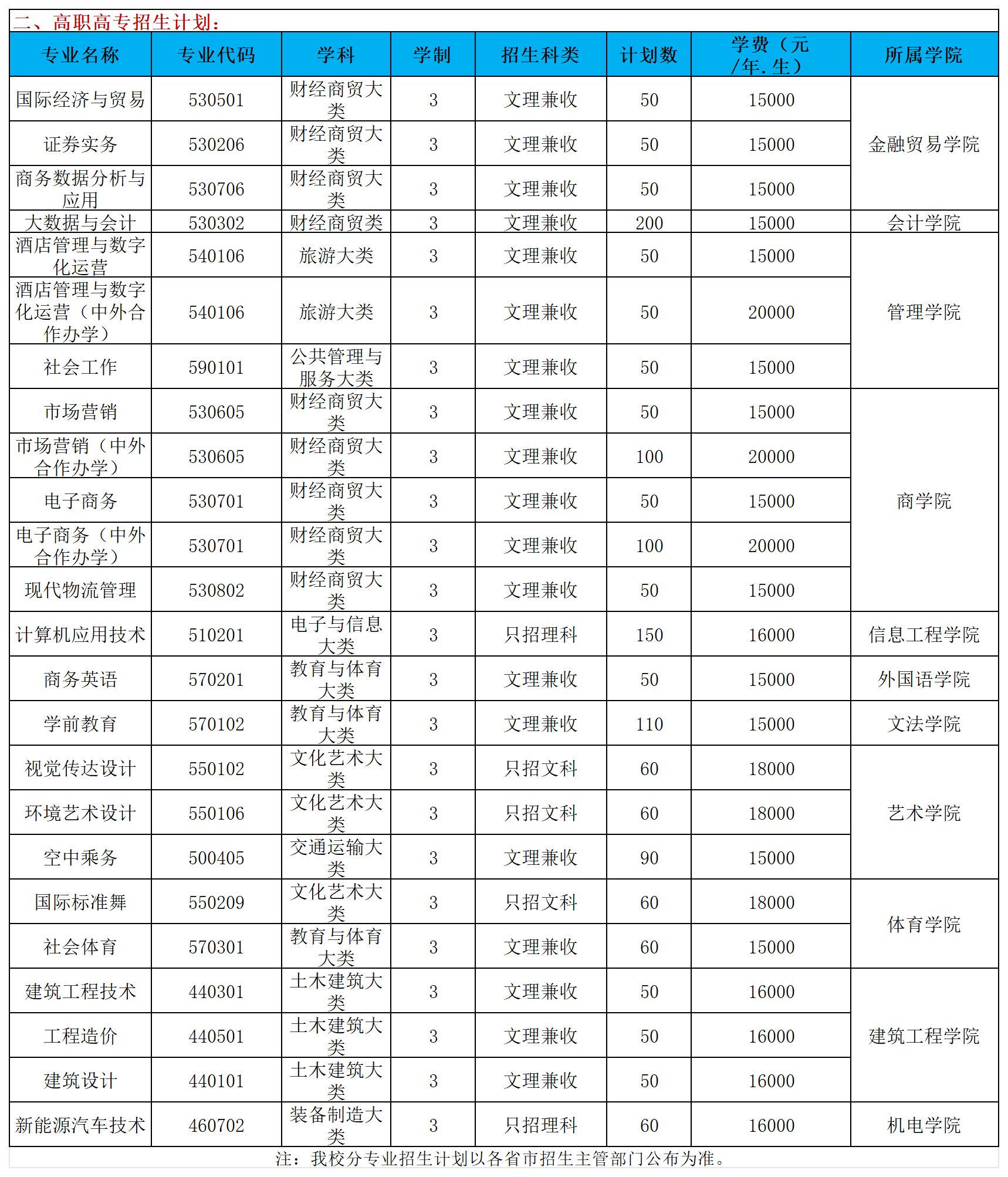 河南交通职业技术学院2025年招生计划
