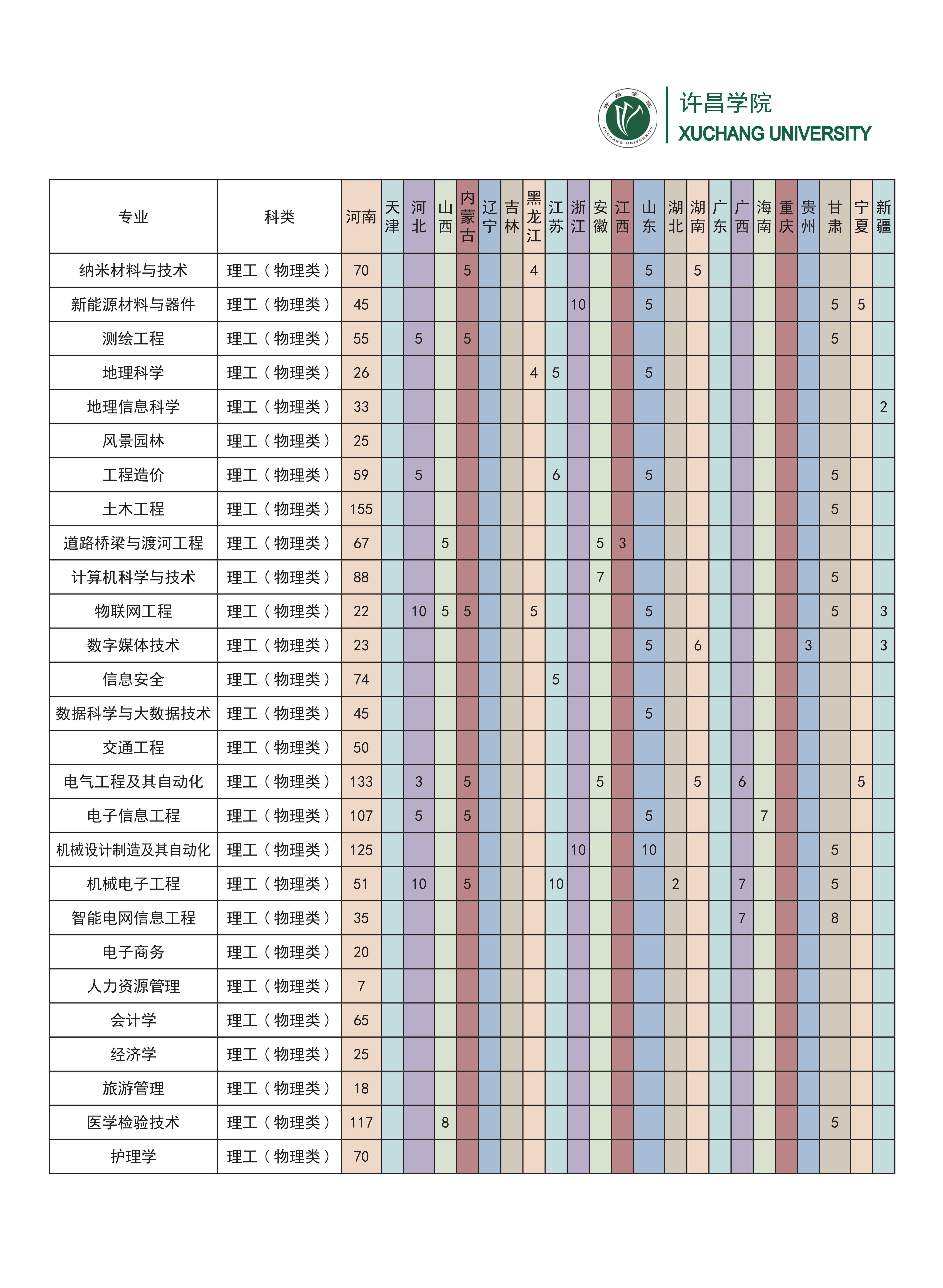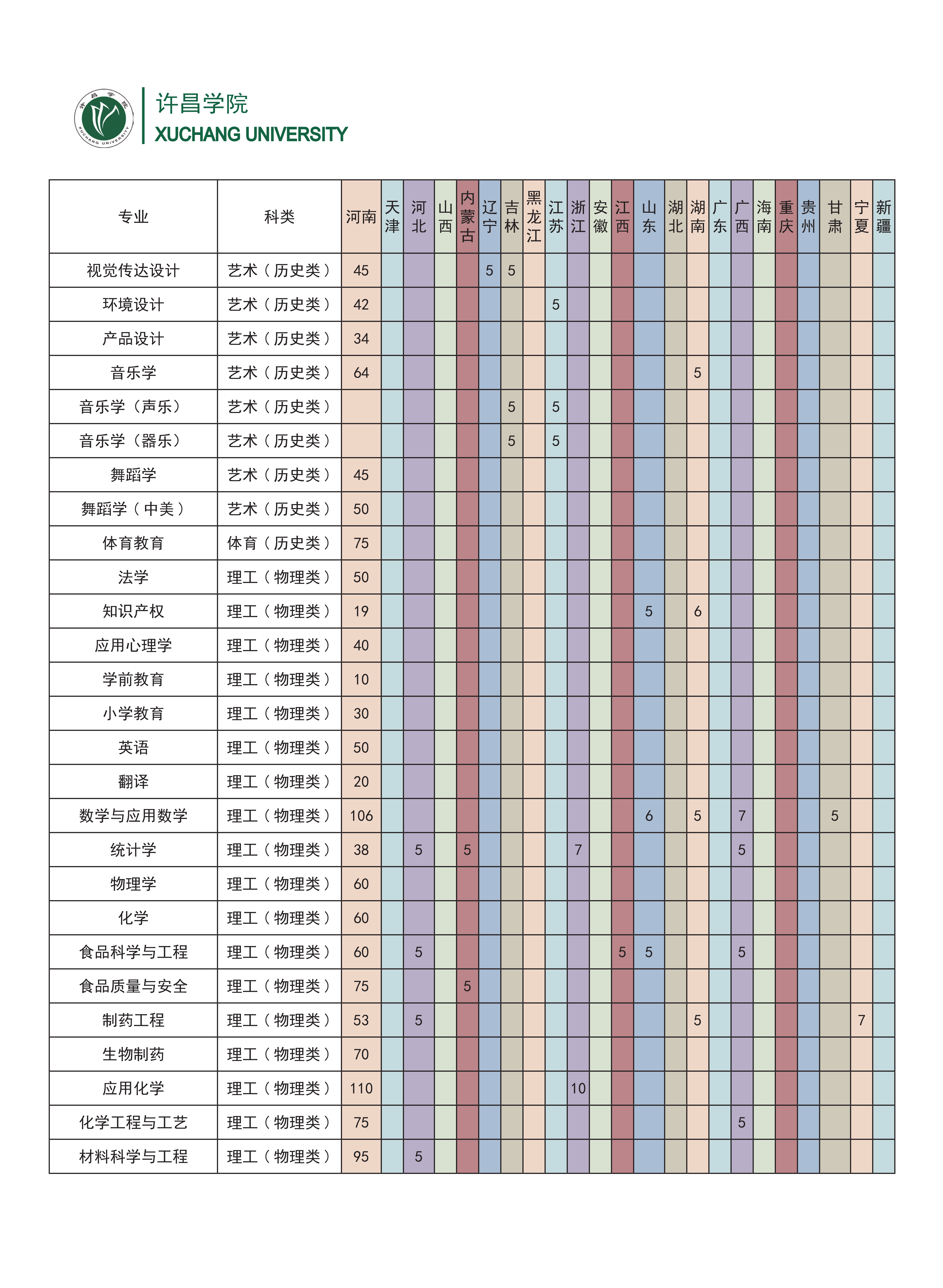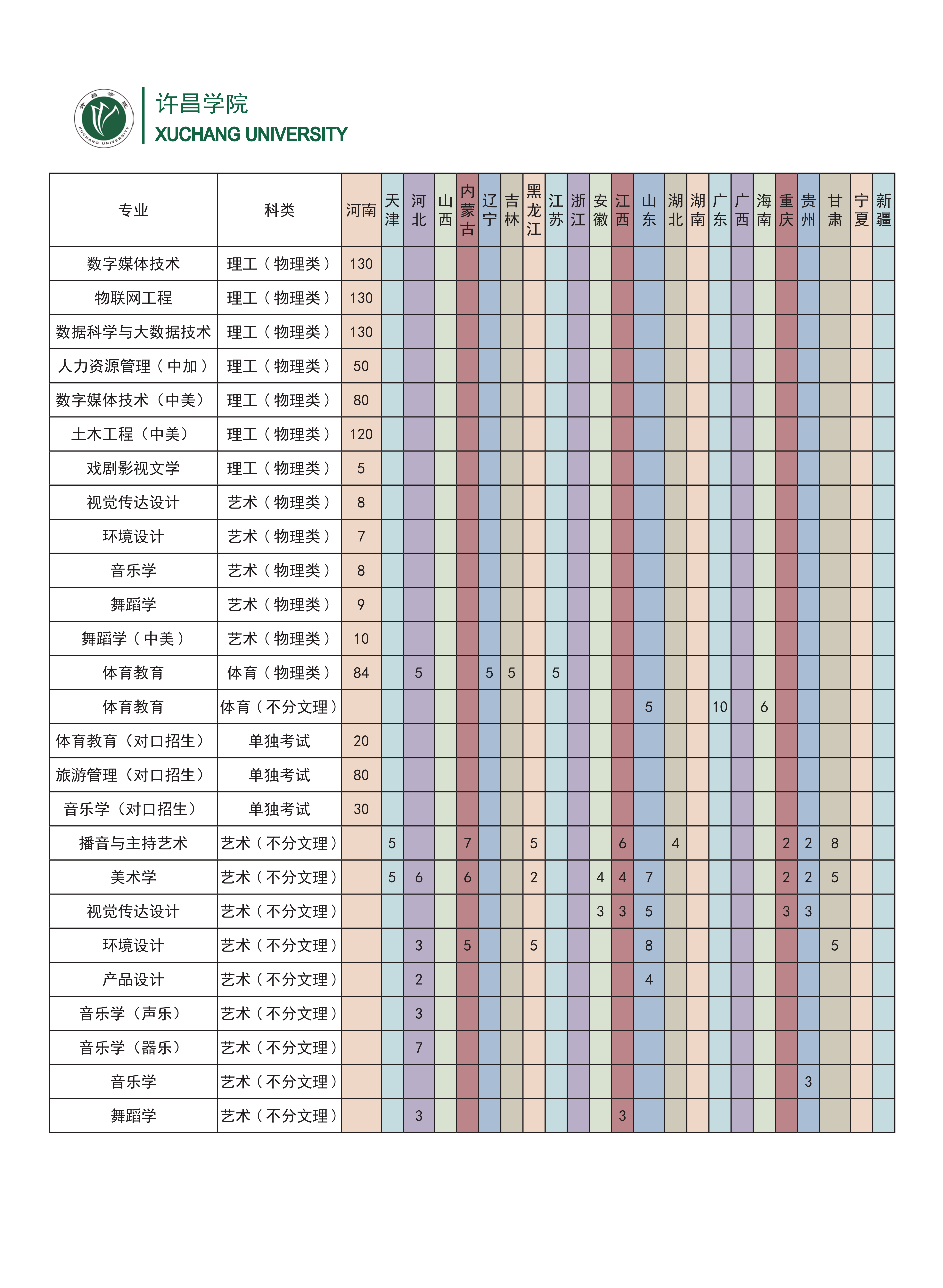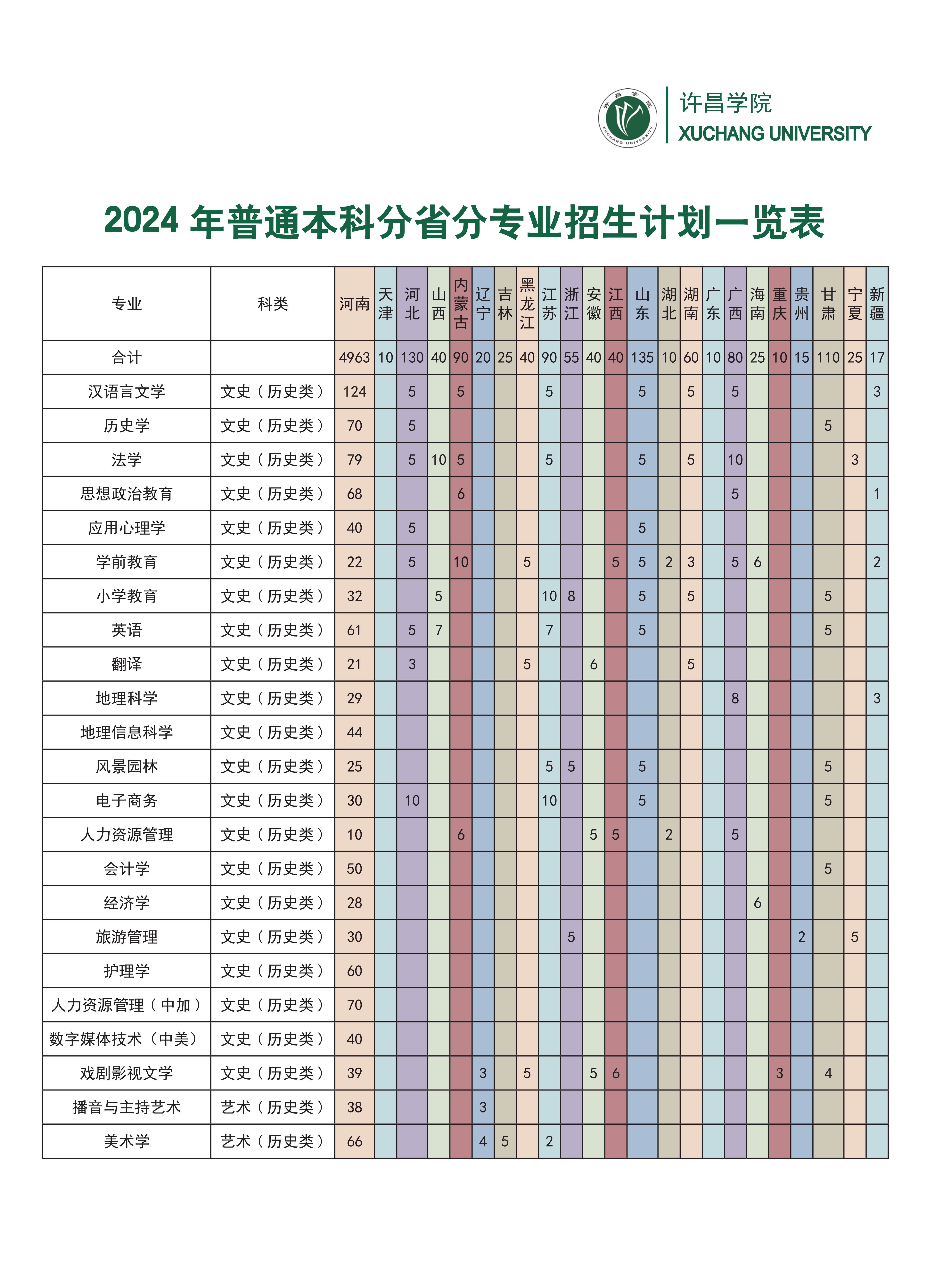许昌学院2024年普通本科分省分专业招生计划一览表