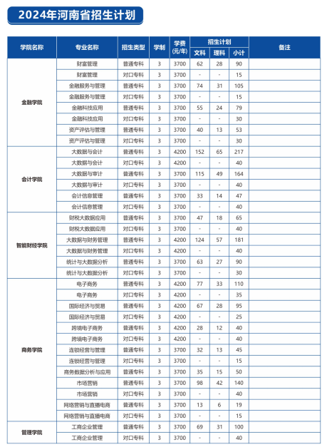 河南经贸职业学院2024年招生计划
