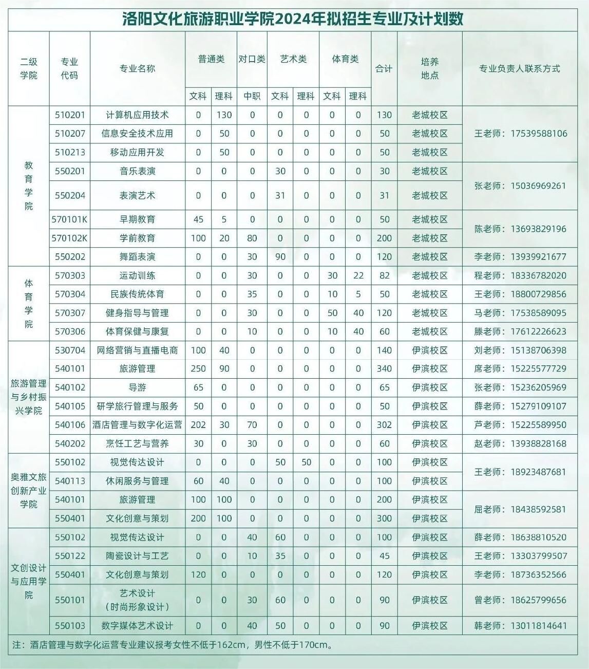 洛阳文化旅游职业学院2024年拟招生专业及计划数
