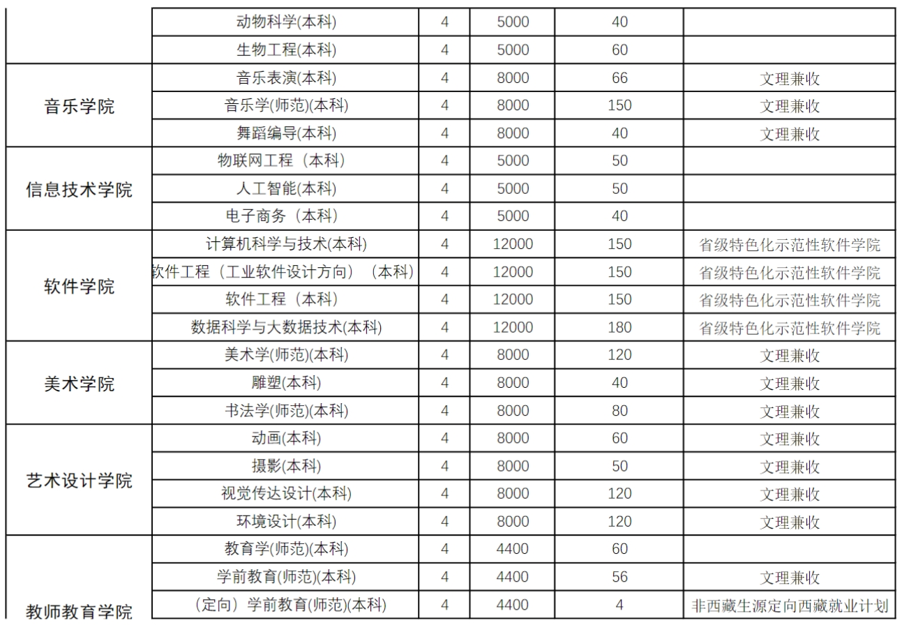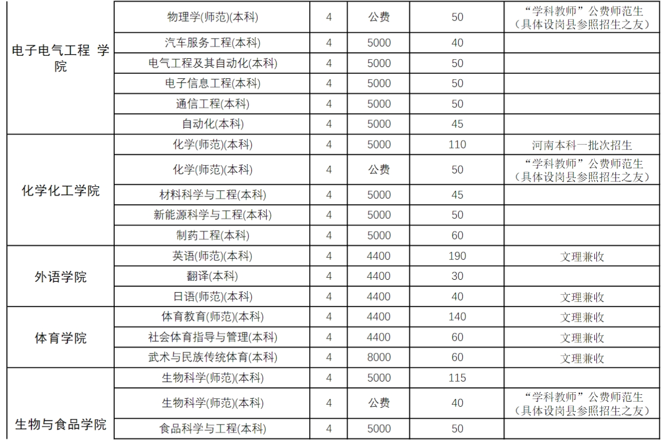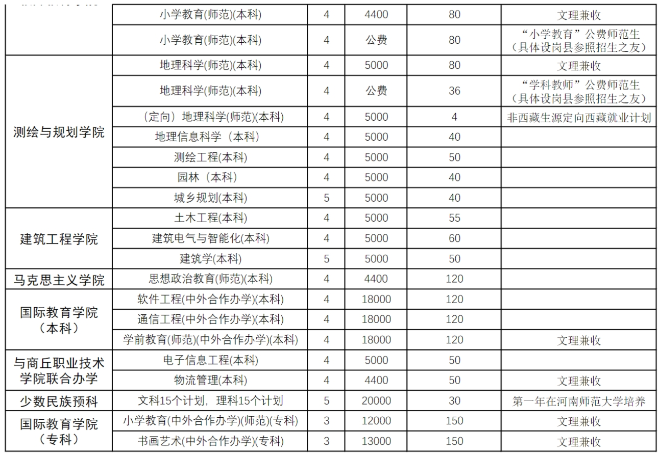 商丘师范学院2024年本科专科分专业招生计划