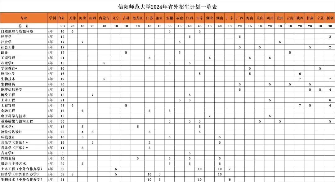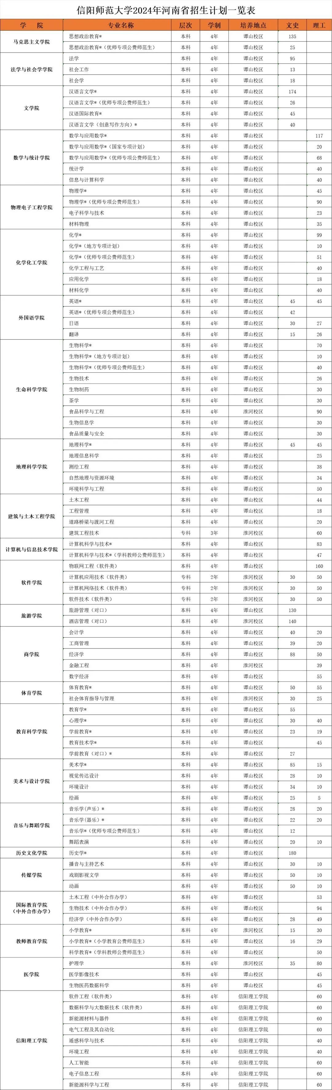 信阳师范大学2024年招生计划