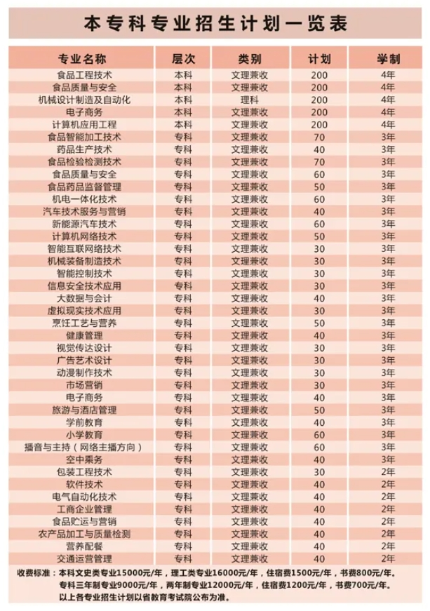 漯河食品工程职业大学2024年招生计划