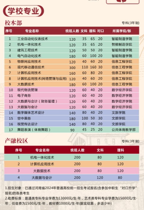 开封职业学院2024招生计划