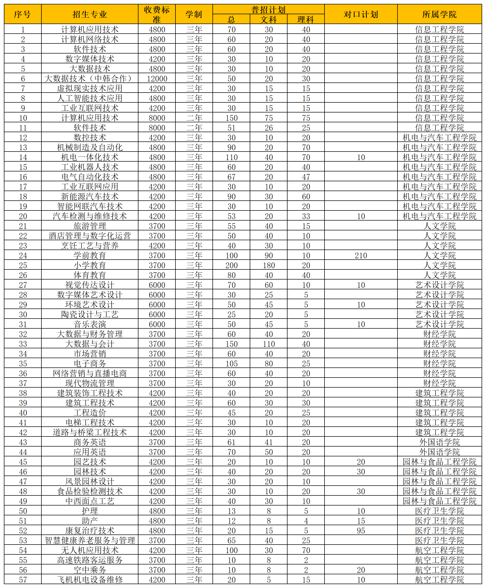 许昌职业技术学院2024年普通高招招生计划