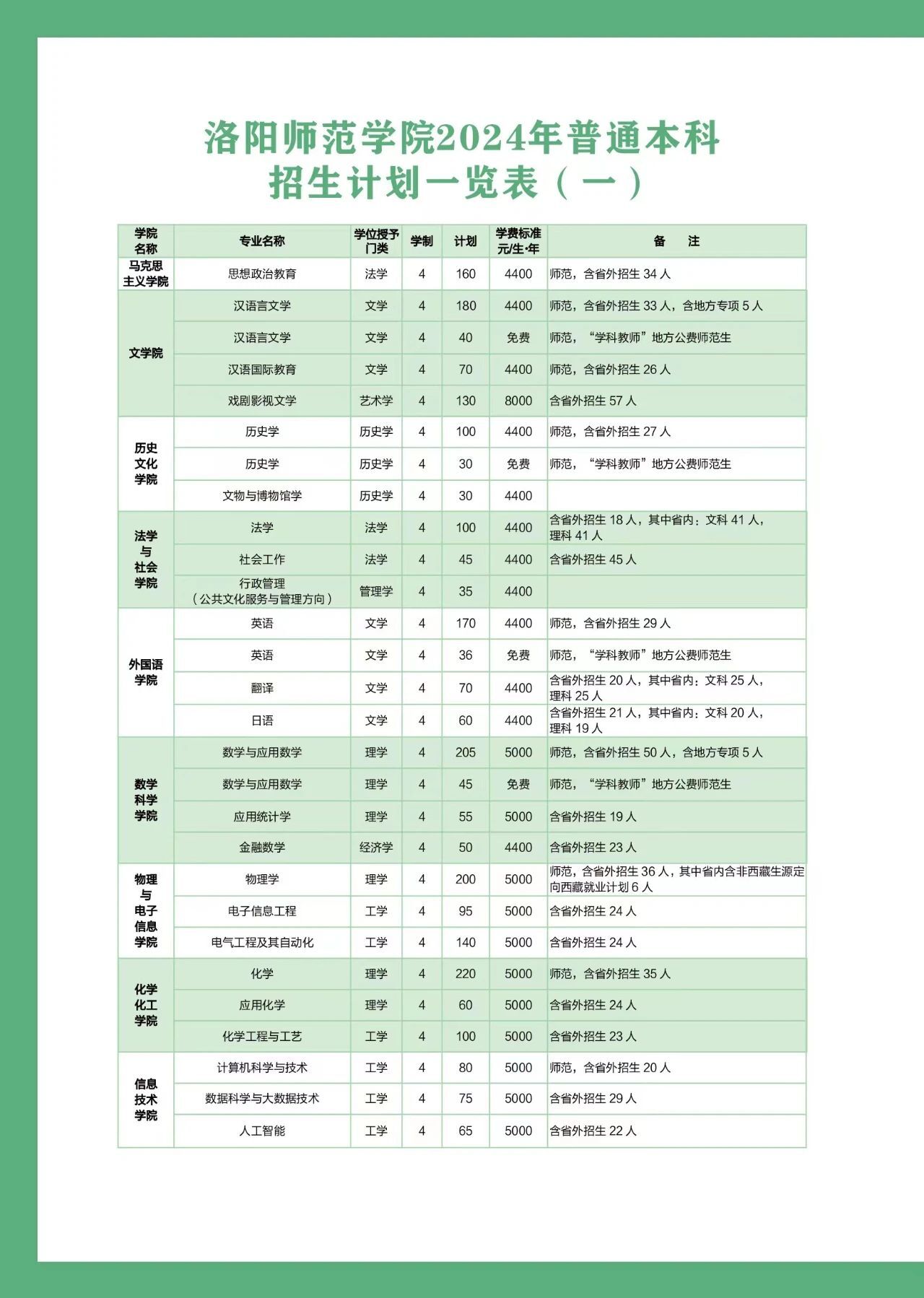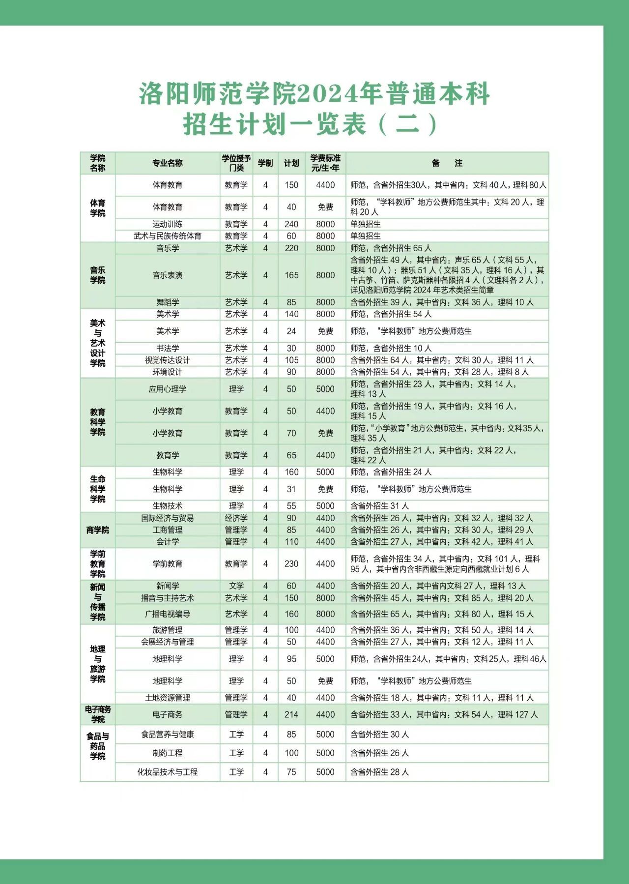 洛阳师范学院2024年普通本科招生计划