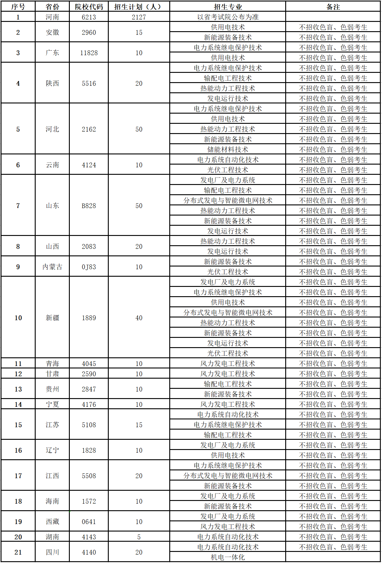 郑州电力高等专科学校2024年统招招生计划