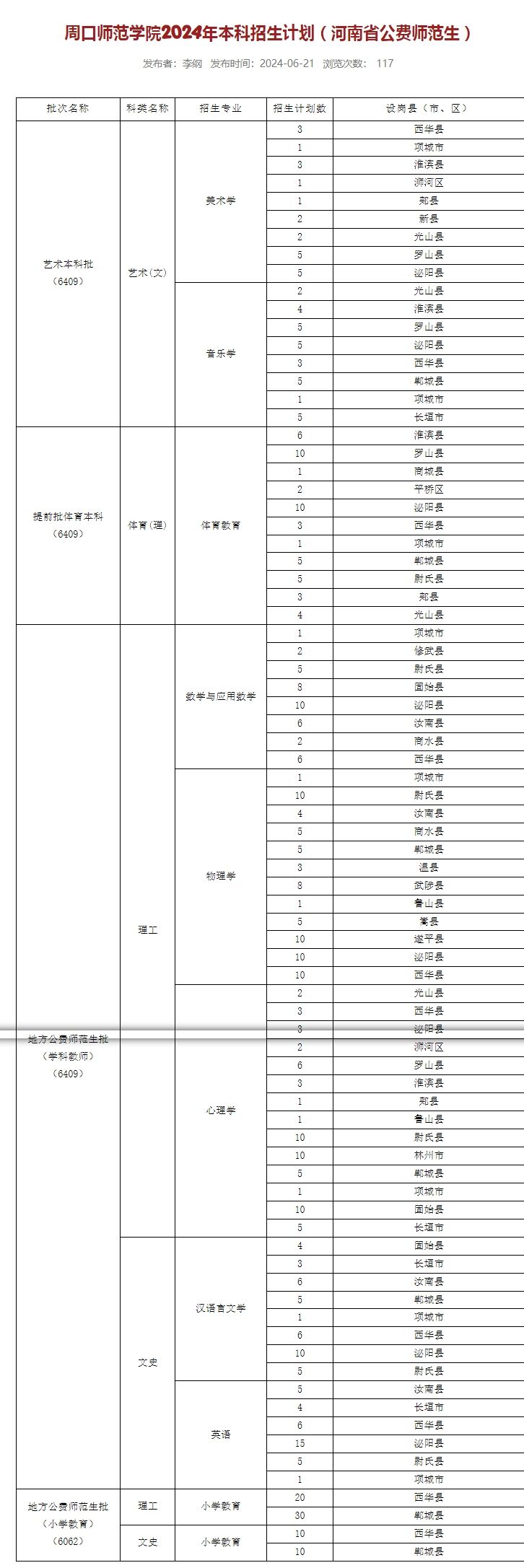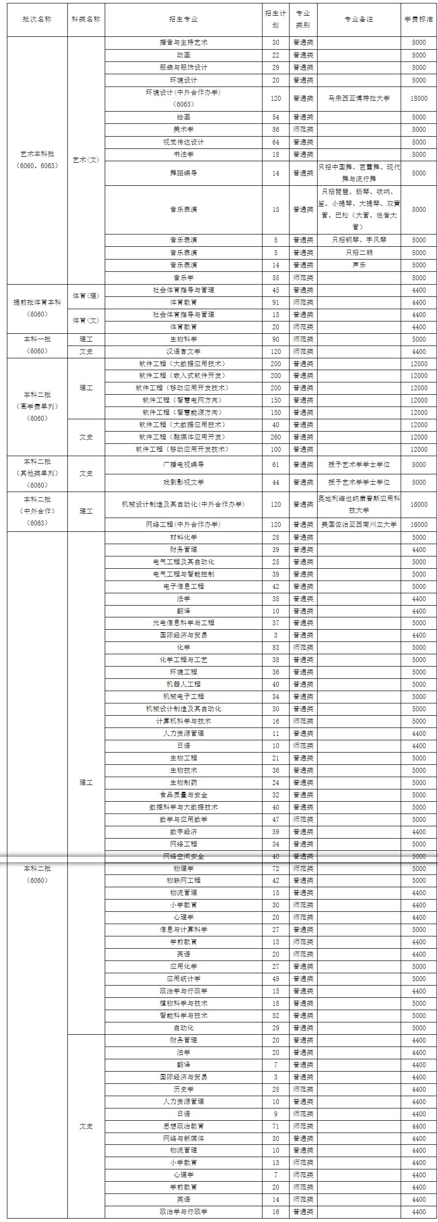 周口师范学院2024年本科招生计划