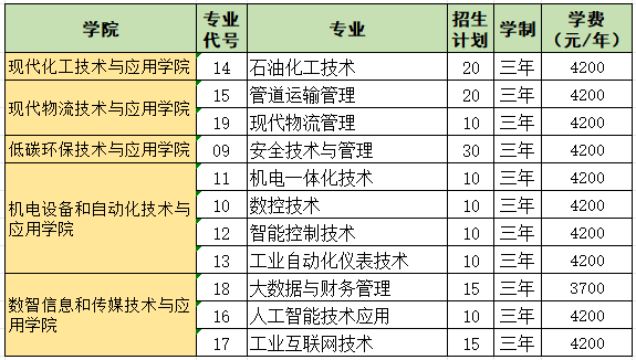 濮阳石油化工职业技术学院2024年河南省招生专业计划表