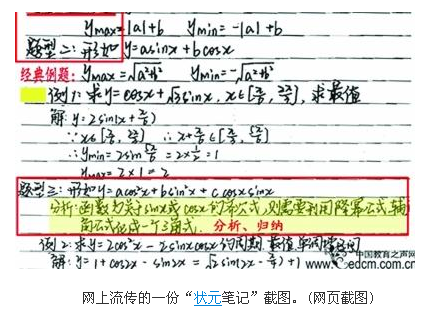 “据说这个笔记是去年浙江省理科前几名的考生的。”花了大概200多块钱买进状元笔记的他,觉得状元笔记在细节以及重点难点的整理方面归纳得不错,“毕竟不是自己的笔记不能说完全理解,但是看了他们的笔记能学到很多整理笔记的方法。”