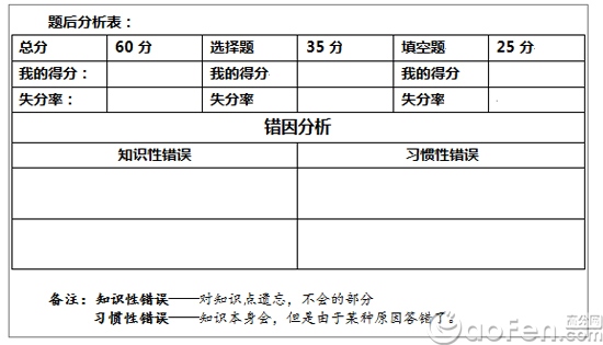 这张表的目的在于,希望同学们在进行完每一套题的训练,都要进行一个这样的总结。明确自身的问题到底在哪里,然后进行针对性的训练,从而提高复习效率,也可以通过这张表不断的了解自己,做到心里有数,这样考试的时候才能够更稳。