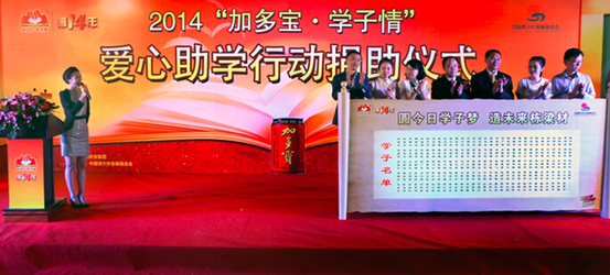 9月1日,2014年“加多宝·学子情”爱心助学行动捐助仪式在北京新闻大厦举行,2000名受助学子名单正式公布,社会各界爱心人士共同出席活动,号召社会关注寒门学子,传递公益正能量。