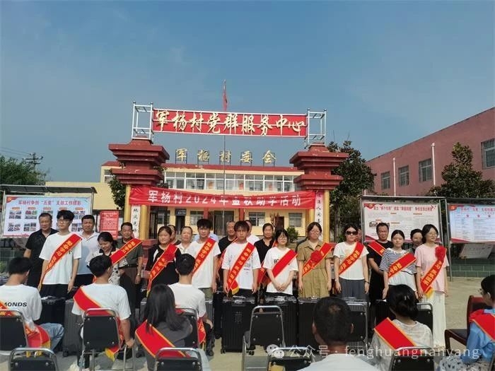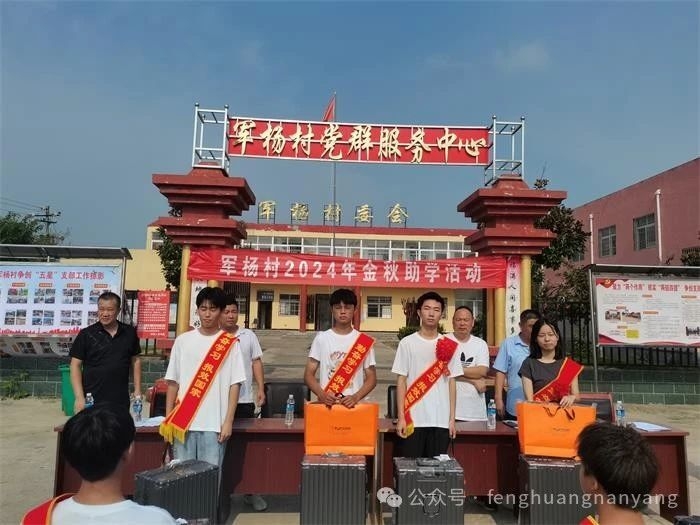 丹桂飘香,硕果累累。8月16日是个特殊的日子,也是个值得庆祝的日子,这天,邓州市裴营乡军杨村举行2024年金秋助学奖品发放仪式,对今年考入“211”大学的丁明寒等4人,考入一本大学的丁鸽等9人,考入二本大学的杨洋等18人,共计31名成绩优秀的大学新生进行奖励,勉励他们树立远大理想,发奋学习,学有所成,学会感恩,将来回报家乡。参加会议的有乡包村干部、全体村干部、乡贤、受表彰的大学新生、学生家长、军杨小学校长等参加会议。