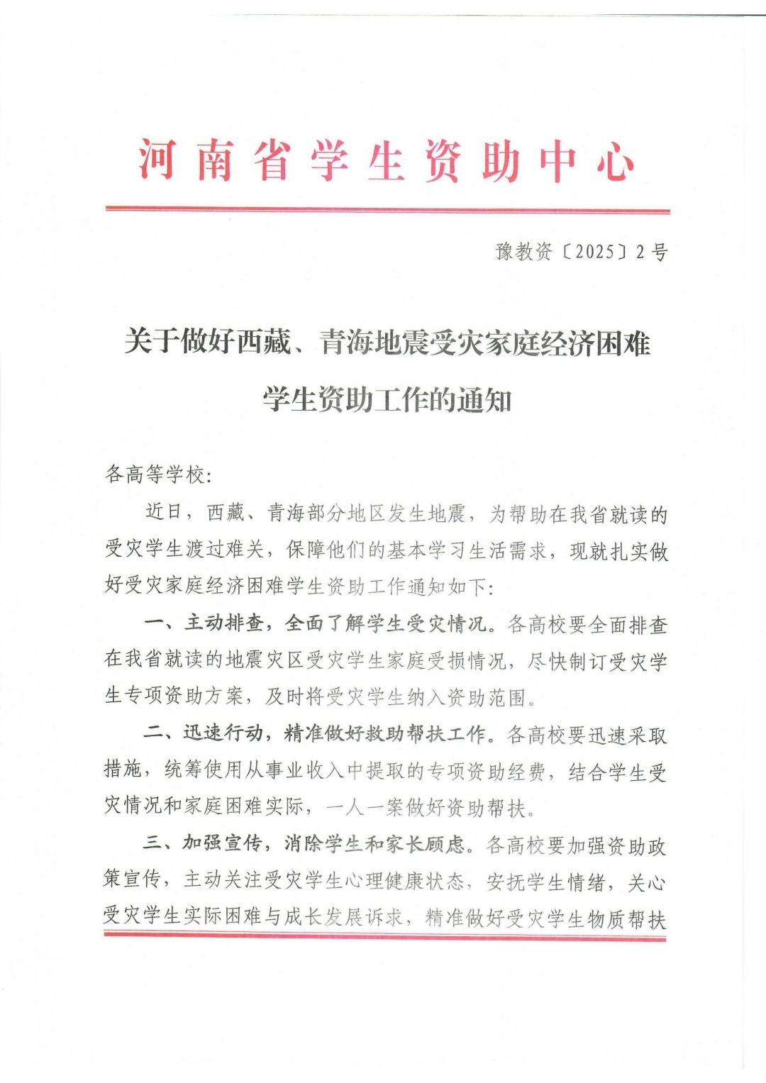 关于做好西藏、青海地震受灾家庭经济困难学生资助工作的通知