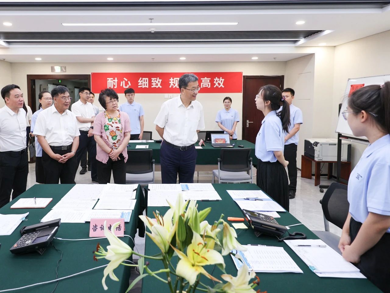 6月7日上午,2024年普通高等学校招生全国统一考试开考前,教育部党组书记、部长怀进鹏在教育部教育考试院通过国家教育考试指挥平台检查全国高考工作。怀进鹏查看了部分考点、考场以及考生入场情况,现场听取了2024年高考应急值守工作专班情况汇报,开展全国高考工作视频调度。教育部党组成员、副部长翁铁慧,教育部党组成员、中央纪委国家监委驻教育部纪检监察组组长王承文参加检查。