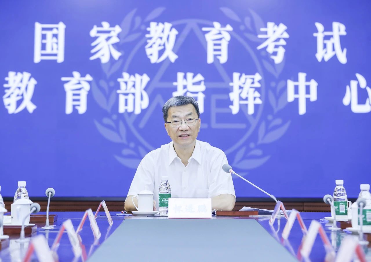 怀进鹏代表教育部向辛勤奋战在高考一线的全体工作人员表示衷心感谢和诚挚慰问。他指出,高考是国家基本教育制度,肩负着为党育人、为国选才的重大使命。教育系统要深入学习贯彻习近平总书记重要指示批示精神,贯彻落实党中央和国务院决策部署,把做好今年高考工作作为重要政治任务、作为对教育系统治理能力的一次大考,齐心协力、全力以赴,确保2024年高考安全平稳、公平公正。