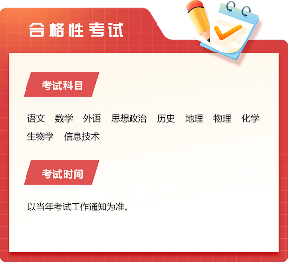 普通高中学业水平考试分为合格性考试和选择性考试。合格性考试成绩是普通高中学生毕业的主要依据;选择性考试成绩计入普通高校统一考试招生录取的考生总成绩。