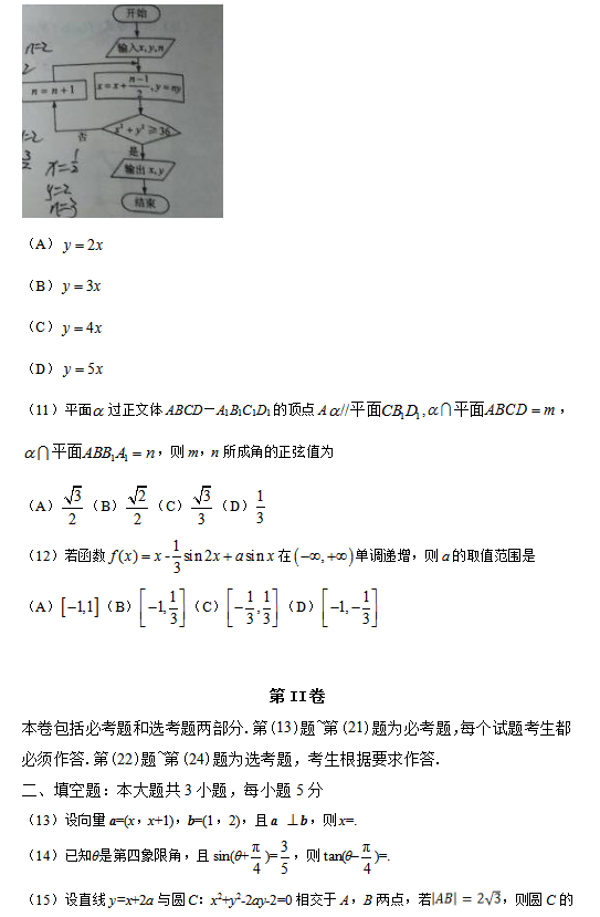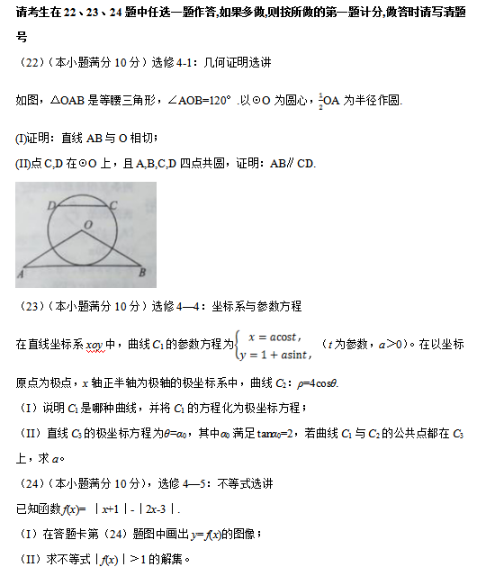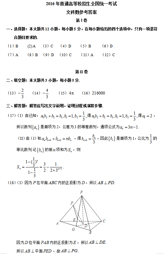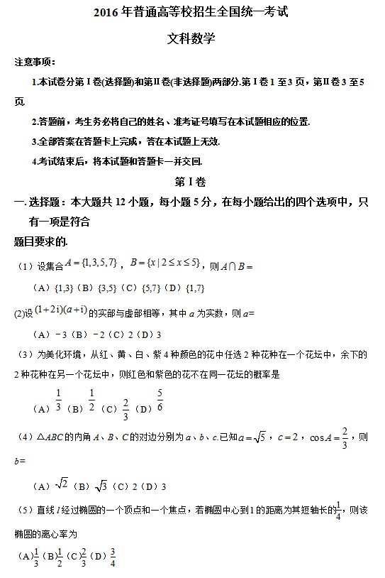 2016年新课标 I 卷高考试题及答案(文科数学)