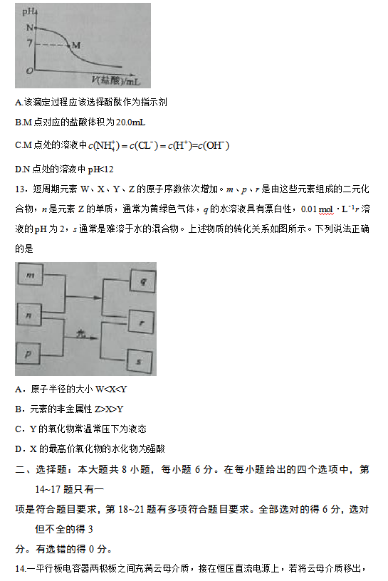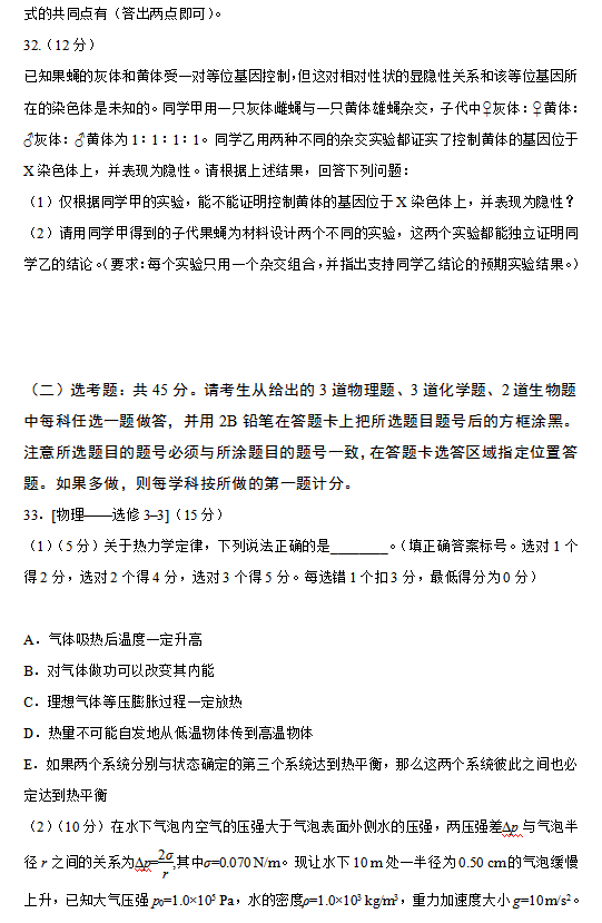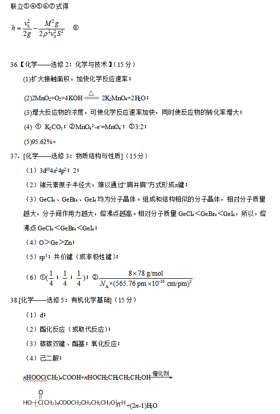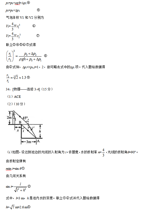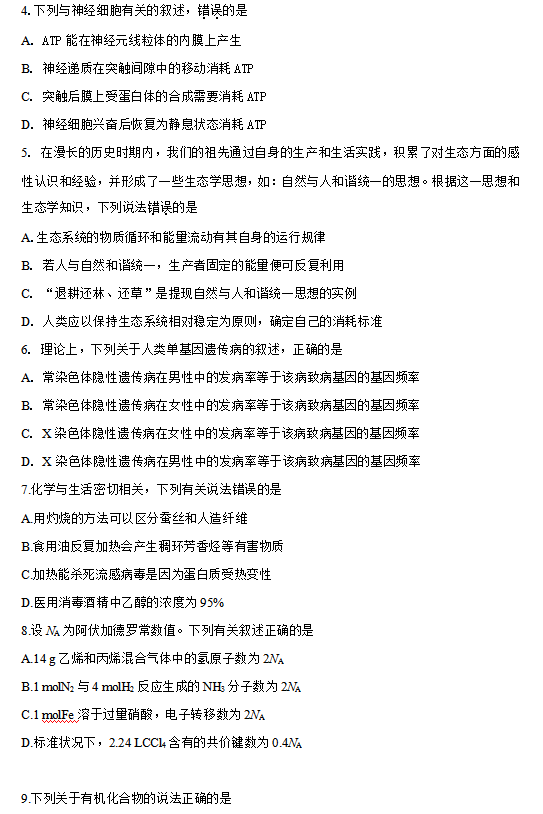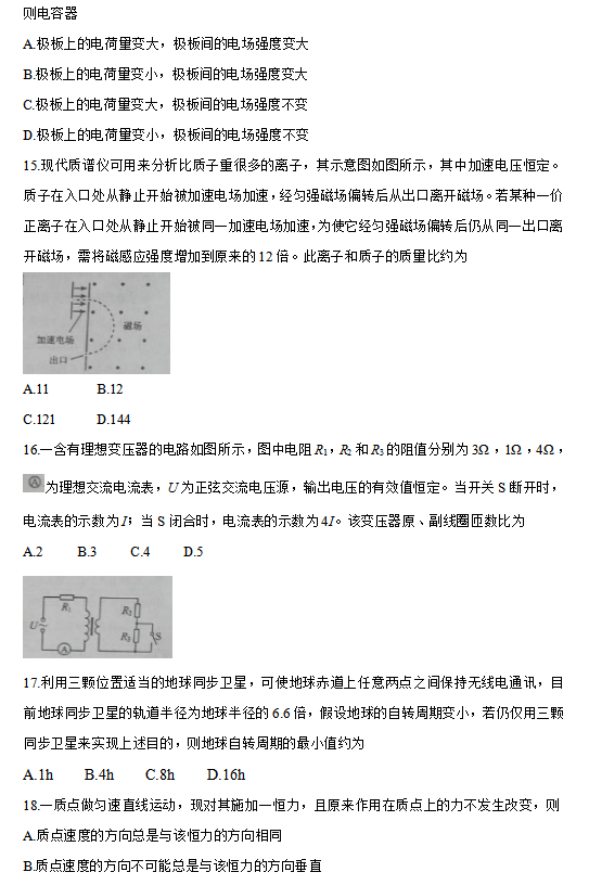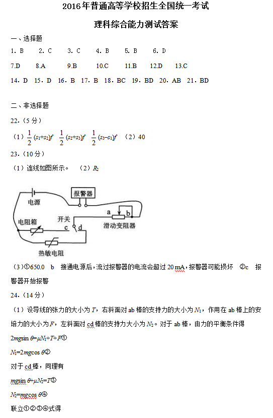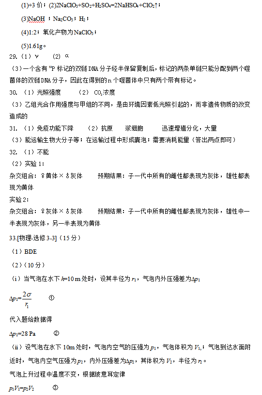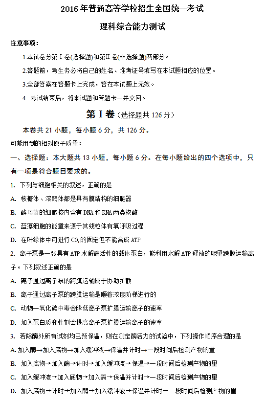 2016年新课标 I 卷高考试题及答案(理综)