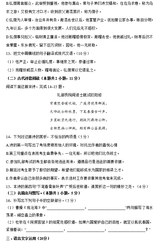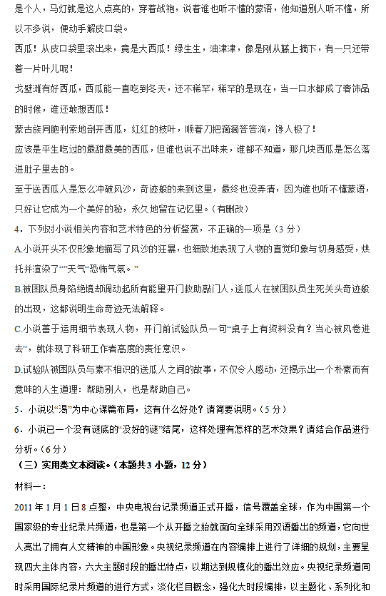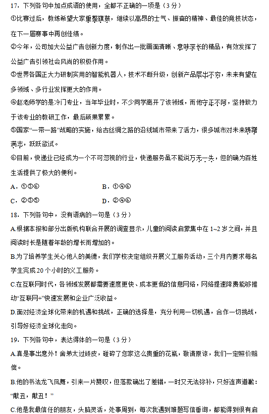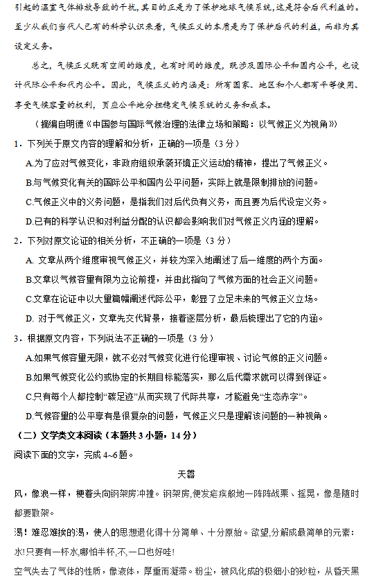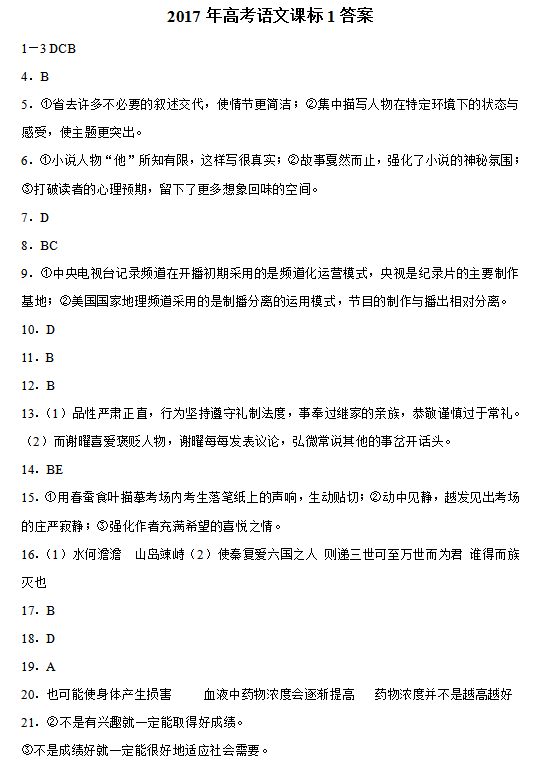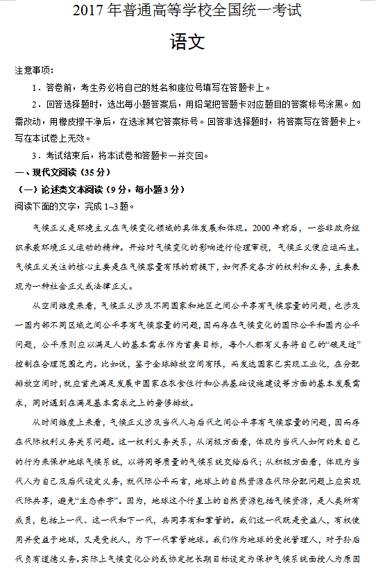 2017年新课标 Ⅰ 卷高考试题及答案(语文)