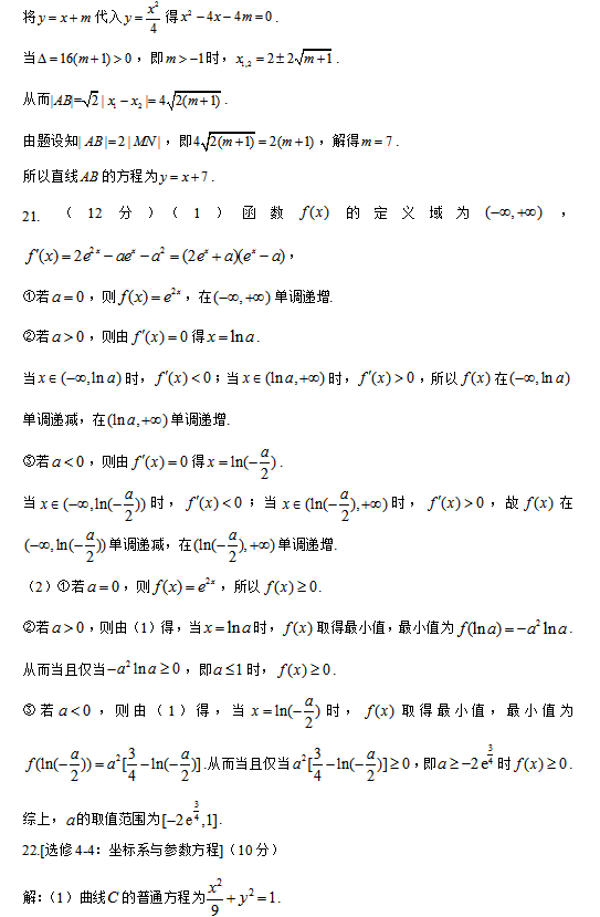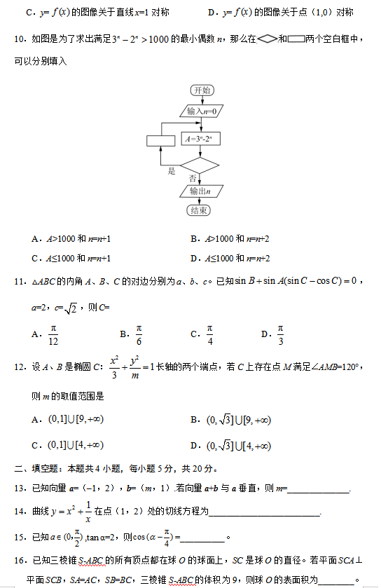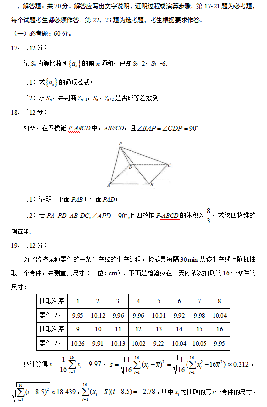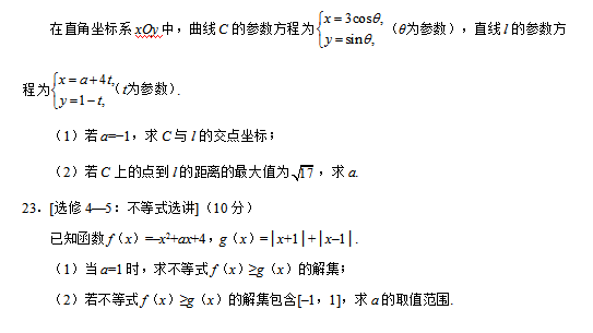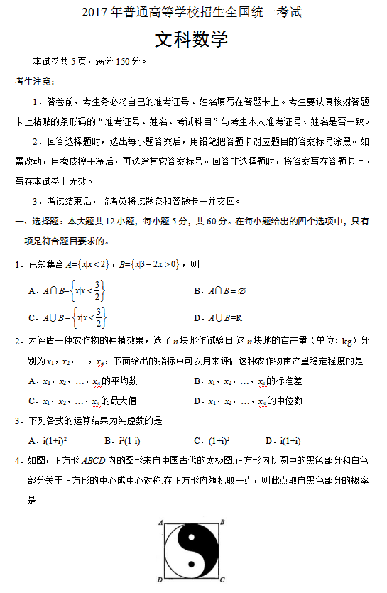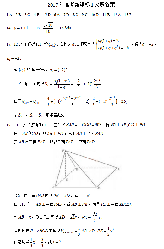 2017年新课标 Ⅰ 卷高考试题及答案(文科数学)