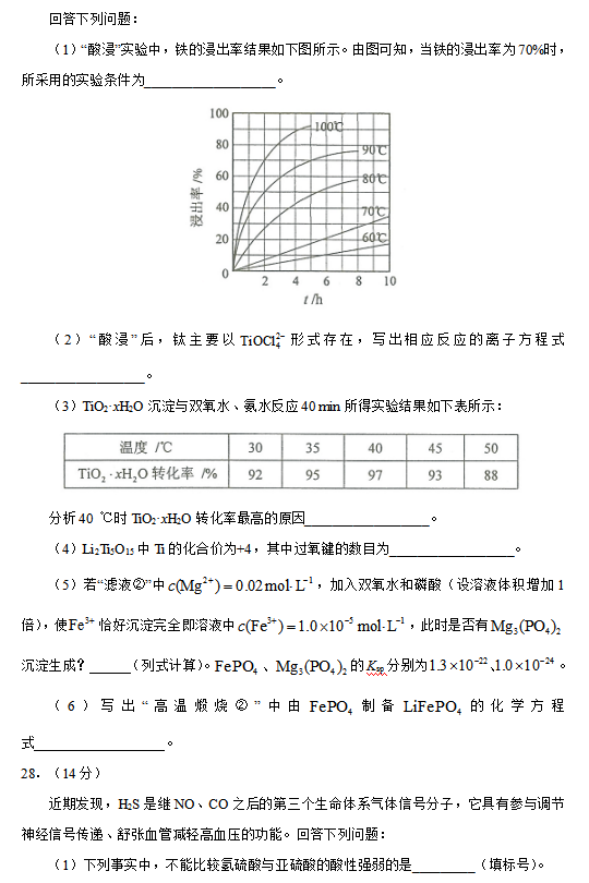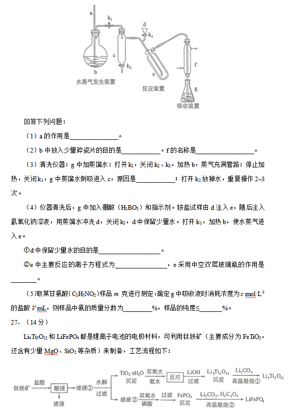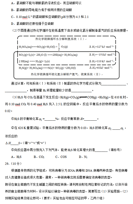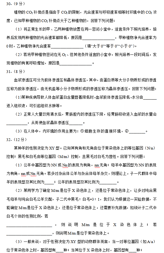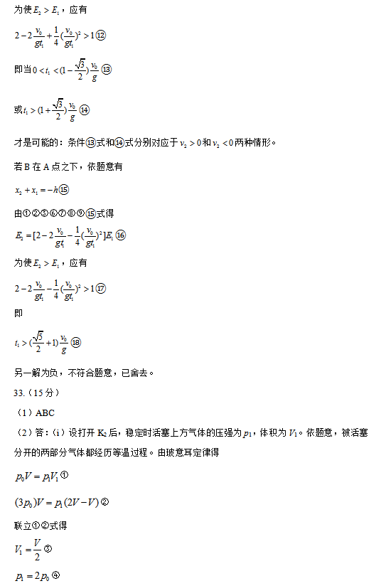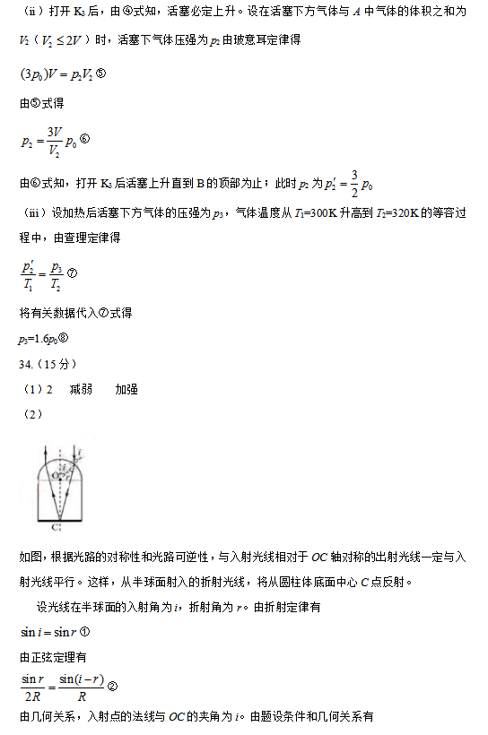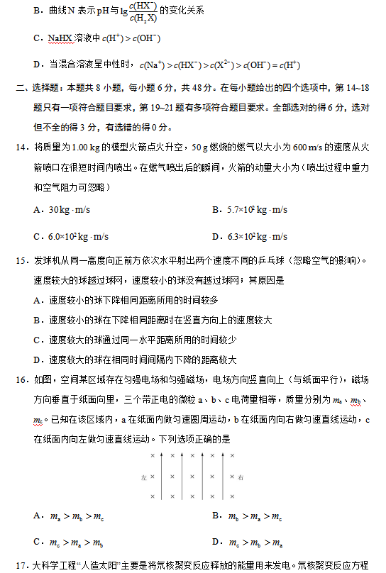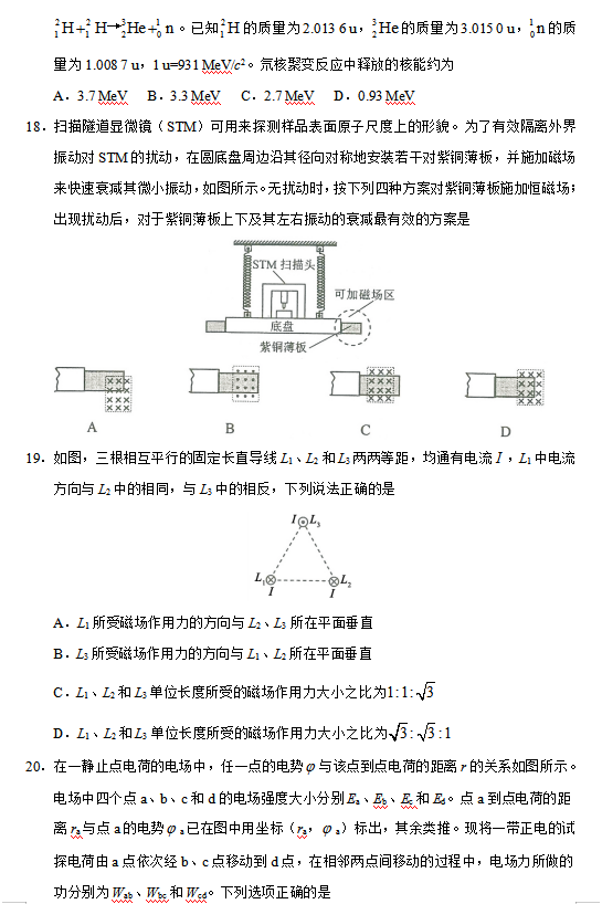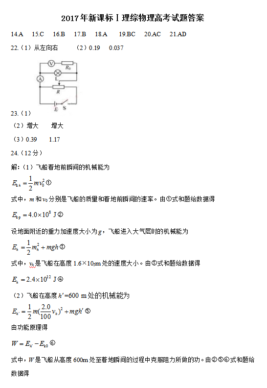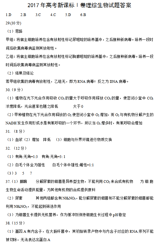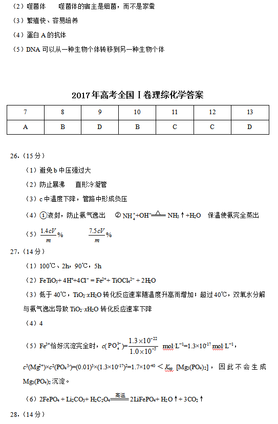 2017年新课标 Ⅰ 卷高考试题及答案(理综)