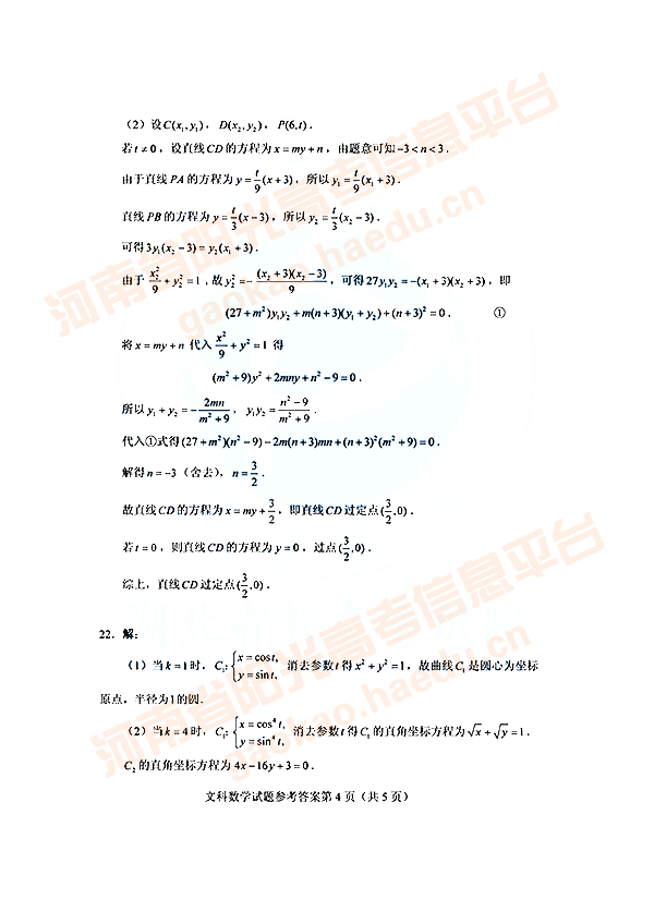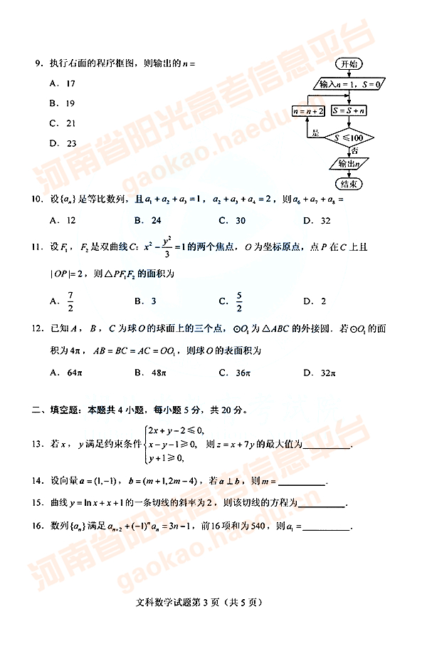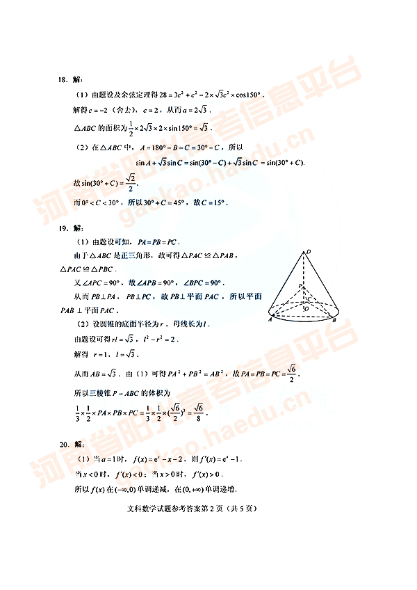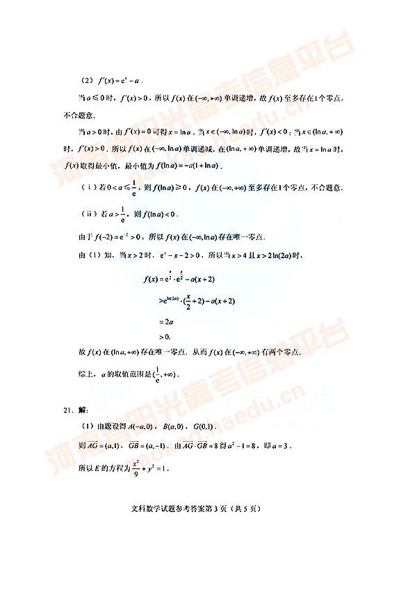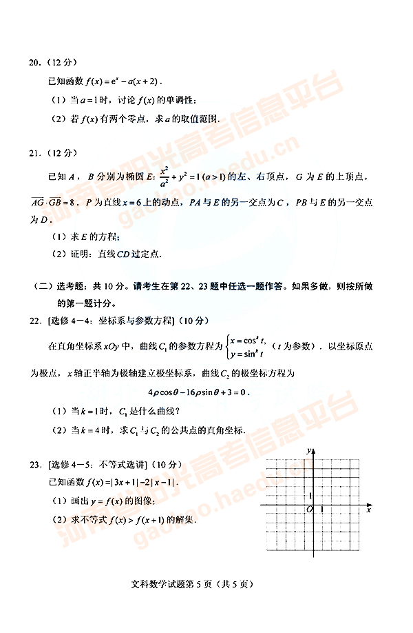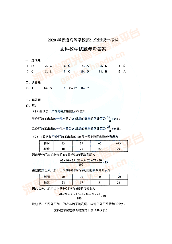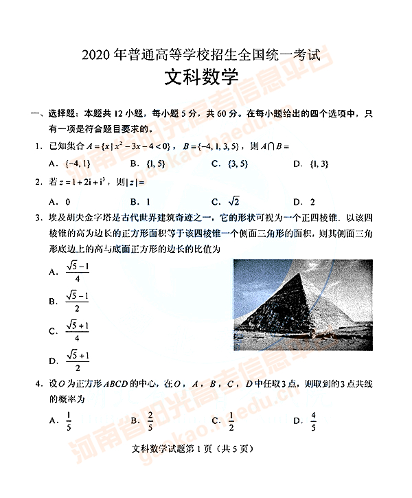 2020年全国Ⅰ卷高考试题及答案(文科数学)