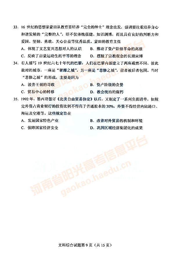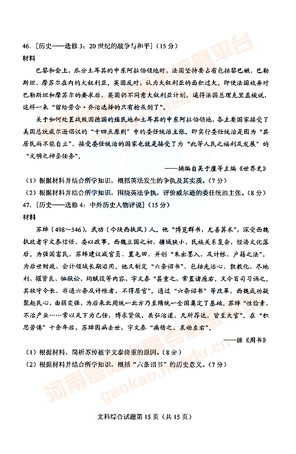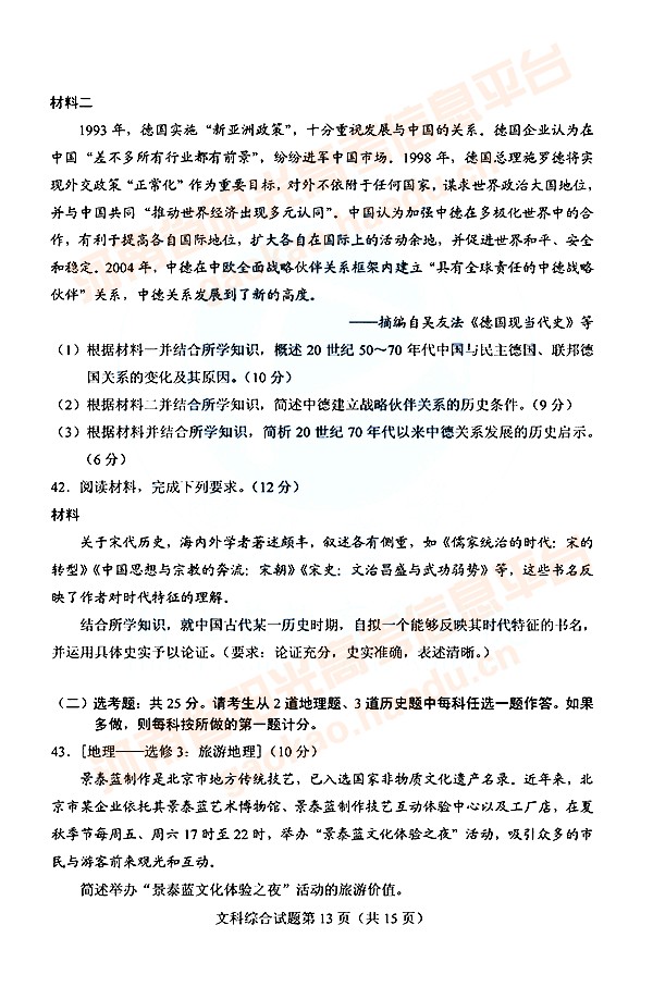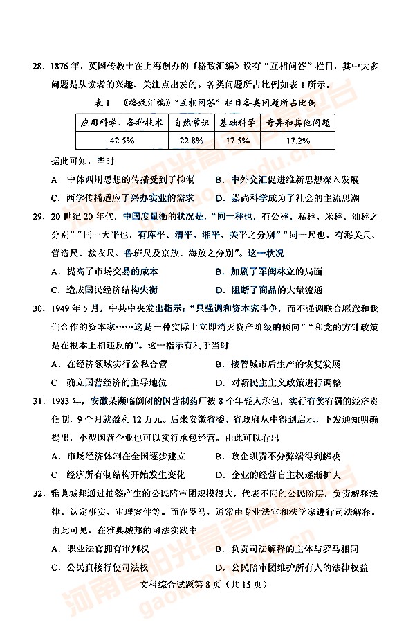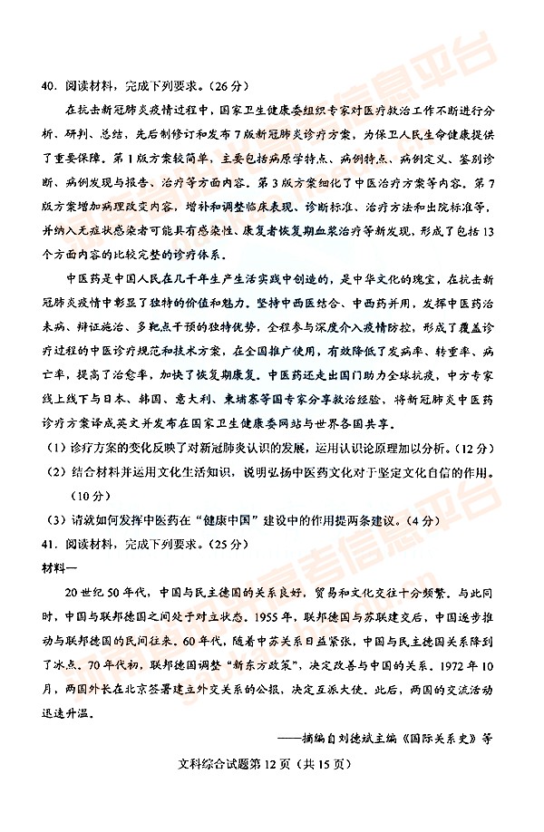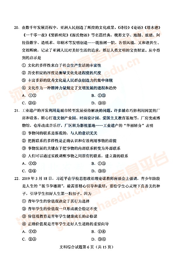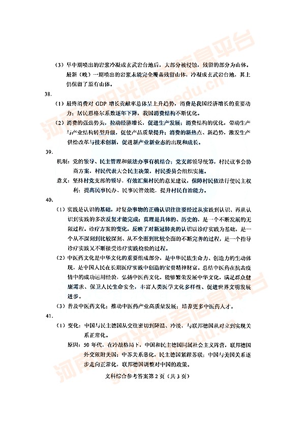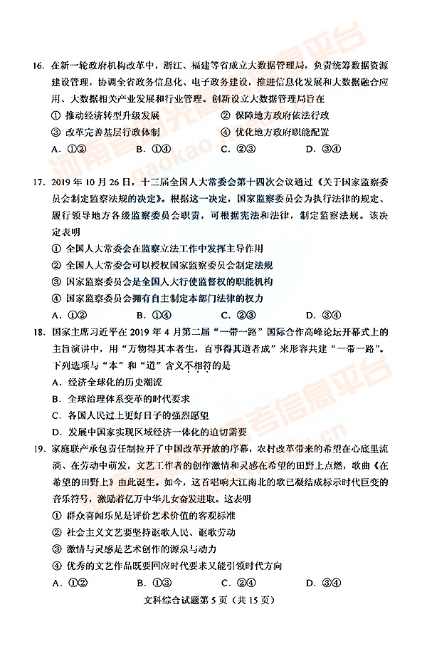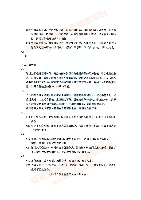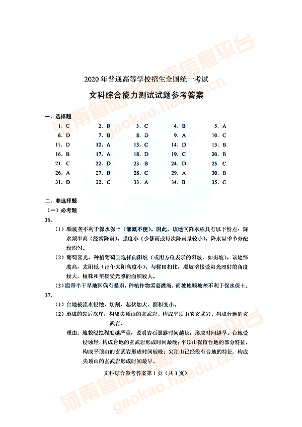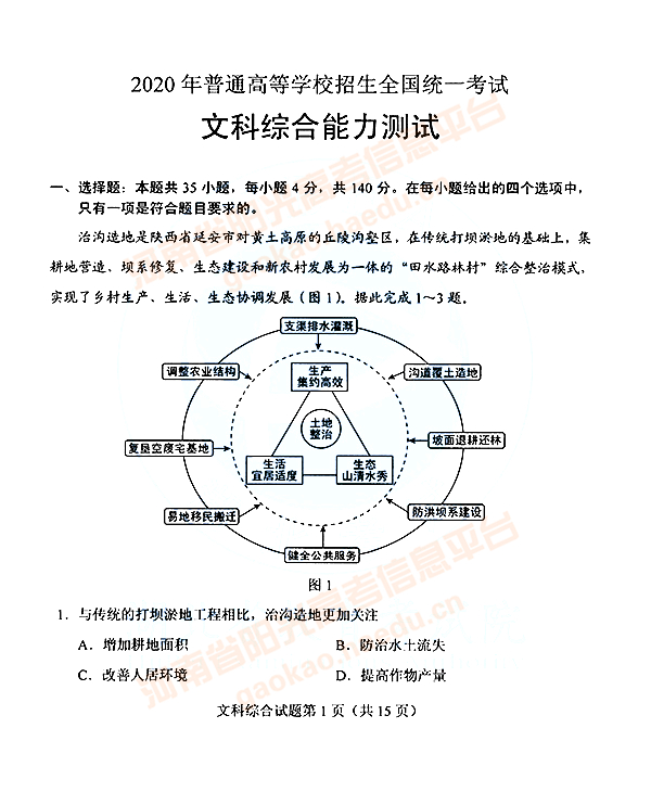 2020年全国Ⅰ卷高考试题及答案(文科综合)