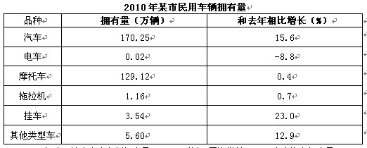 72. 2010年末,该市民用车辆拥有量比上年末增加了多少万辆?()