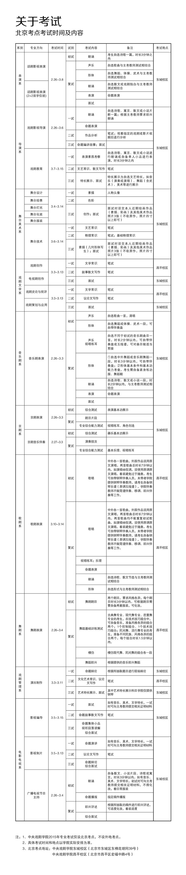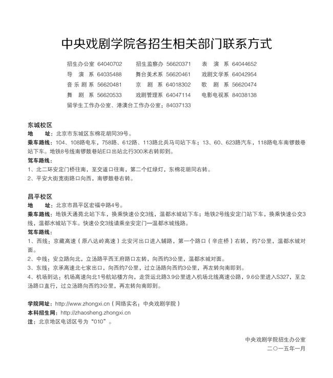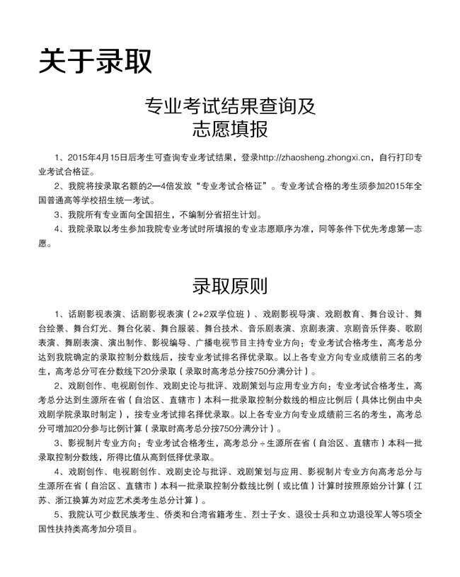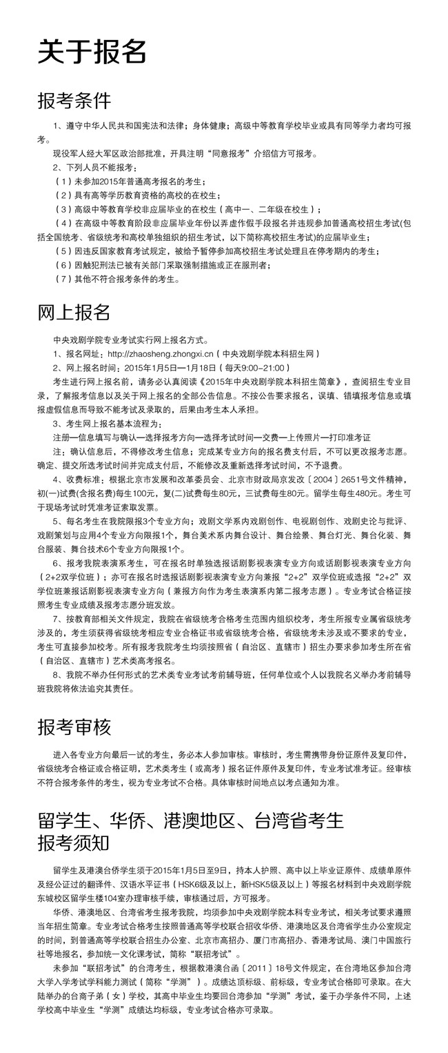 中央戏剧学院2015年本科招生简章