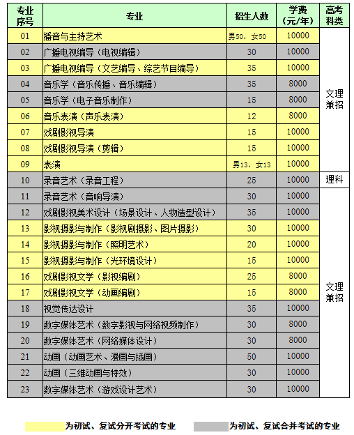 (2)表演专业:发音器官无疾病,五官端正;男生身高一般不低于1.75米;女生身高一般不低于1.62米。