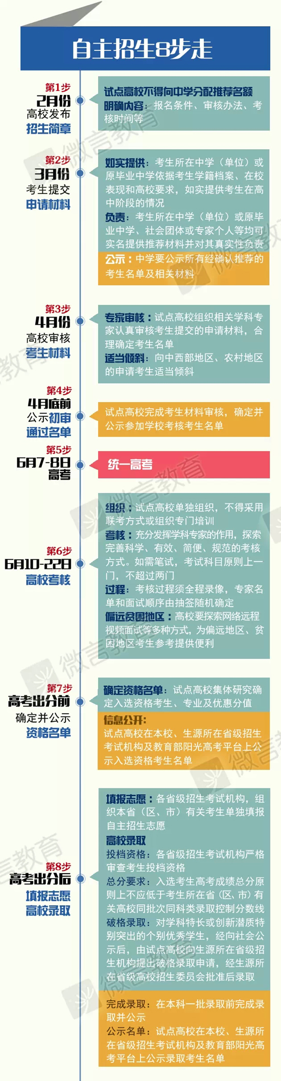 2014年12月,教育部发布了《关于进一步完善和规范高校自主招生试点工作的意见》,规定2015年起,所有试点高校自主招生考核统一安排在高考结束后、高考成绩公布前进行。此外,《意见》明确指出,今年将严格控制自主招生规模,现阶段不扩大试点高校范围和招生比例。