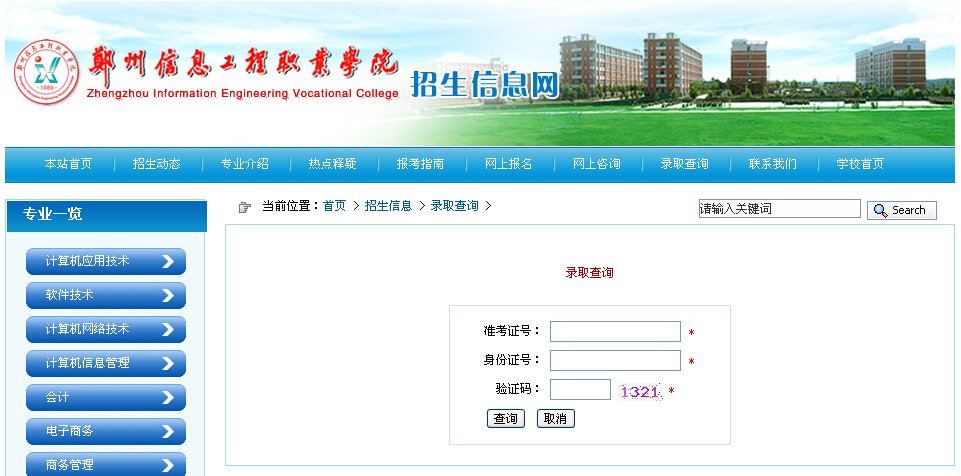 郑州信息工程职业学院2015年高职单招录取查询(点击查询)