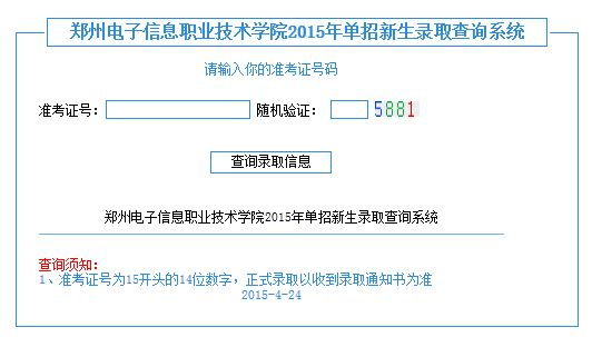 郑州电子信息职业技术学院(东校区)2015年单招新生录取查询(点击查询)