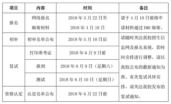 (二)复试:通过初审的考生请于2018年6月10日到我校参加复试。